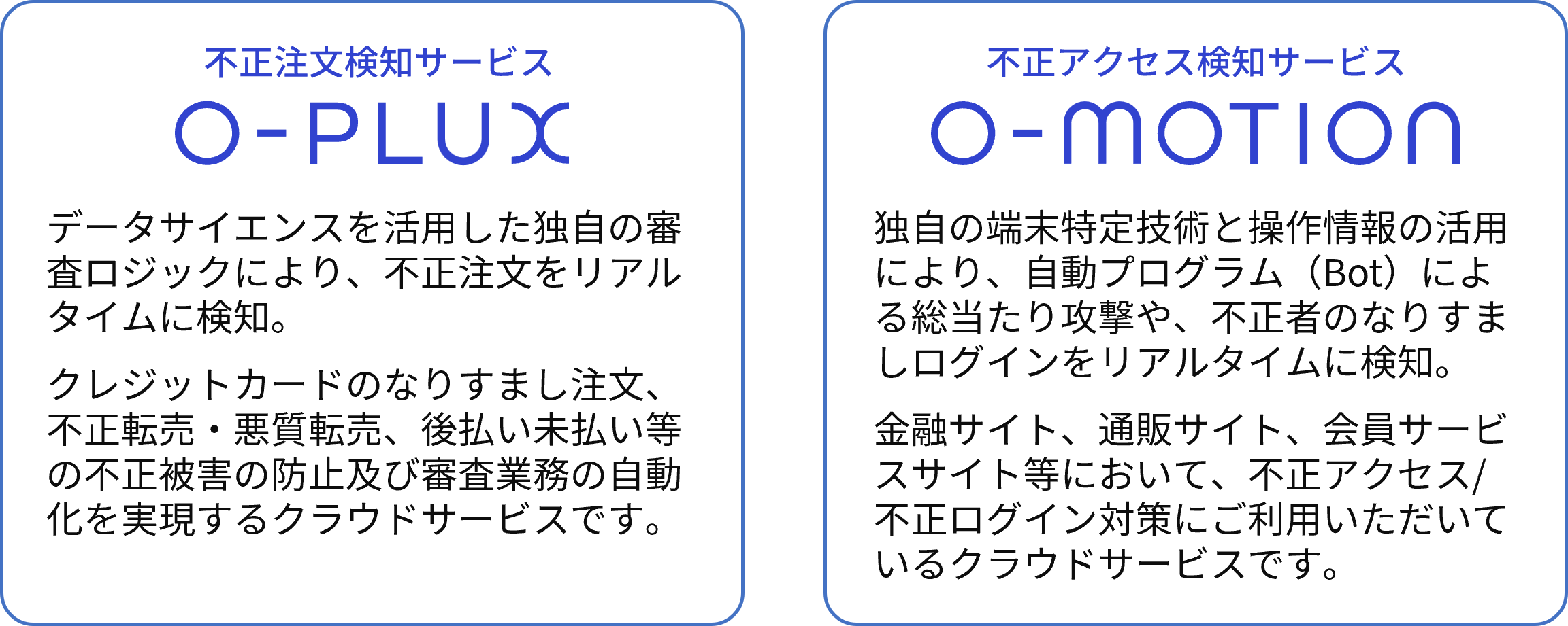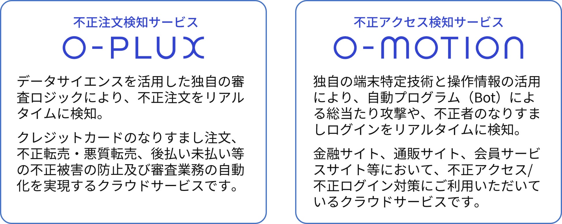 かっこは、「未来のゲームチェンジャーの『まずやってみよう』をカタチに」という経営ビジョンを掲げ、当社の有するセキュリティ・ペイメント・データサイエンスの技術とノウハウをもとに、アルゴリズム及びソフトウエアを開発・提供することで、企業の課題解決やチャレンジを支援することを目指しております。特に、オンライン取引における「不正検知サービス」を中核サービスとして位置づけ、不正注文検知サービス「O-PLUX(オープラックス)」、不正アクセス検知サービス「O-MOTION(オーモーション)」を提供しております。