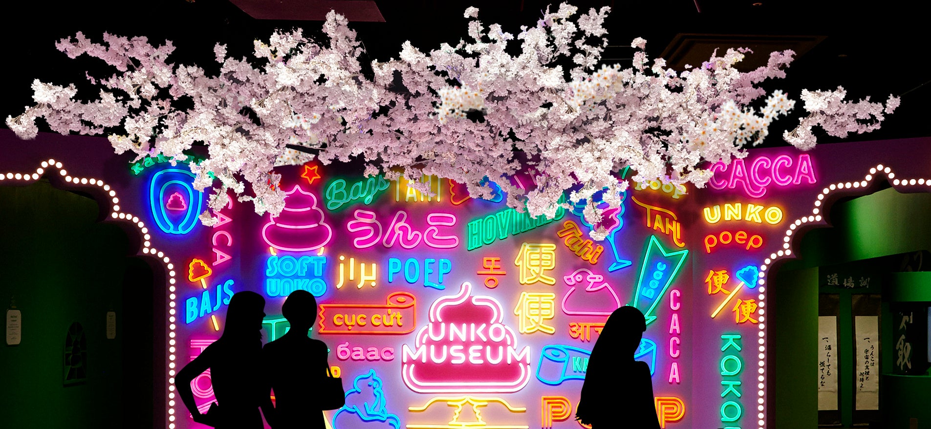 オープン当初から若い世代を中心に大人気のウンスタ映えスポットに、期間限定で満開の桜(造花)が登場。巨大うんこと桜、光り輝くうん語ネオンと桜など、他では見ることのできない、一風変わったお花見をお楽しみください。
