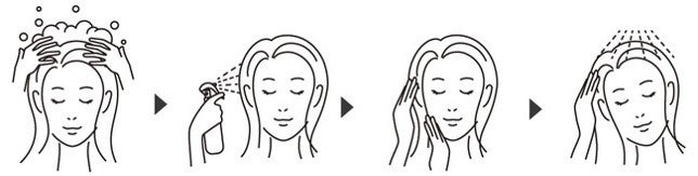 タオルドライ後、適量をスプレーし、髪全体に馴染ませてから乾かします。入浴後のヘアトリートメントや、朝や日中のスタイリングとしてご使用いただくことで潤いのあるまとまり髪を叶えます。