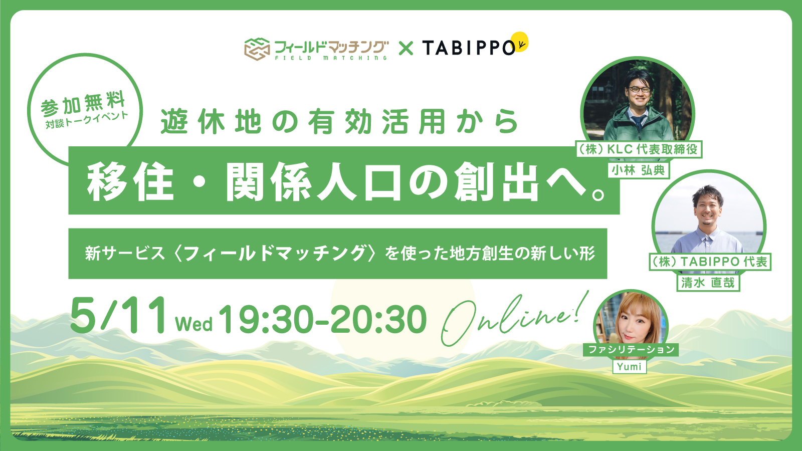 新サービス「フィールドマッチング」の活用法や、KLC・TABIPPO両代表によるトークセッションを予定しています。