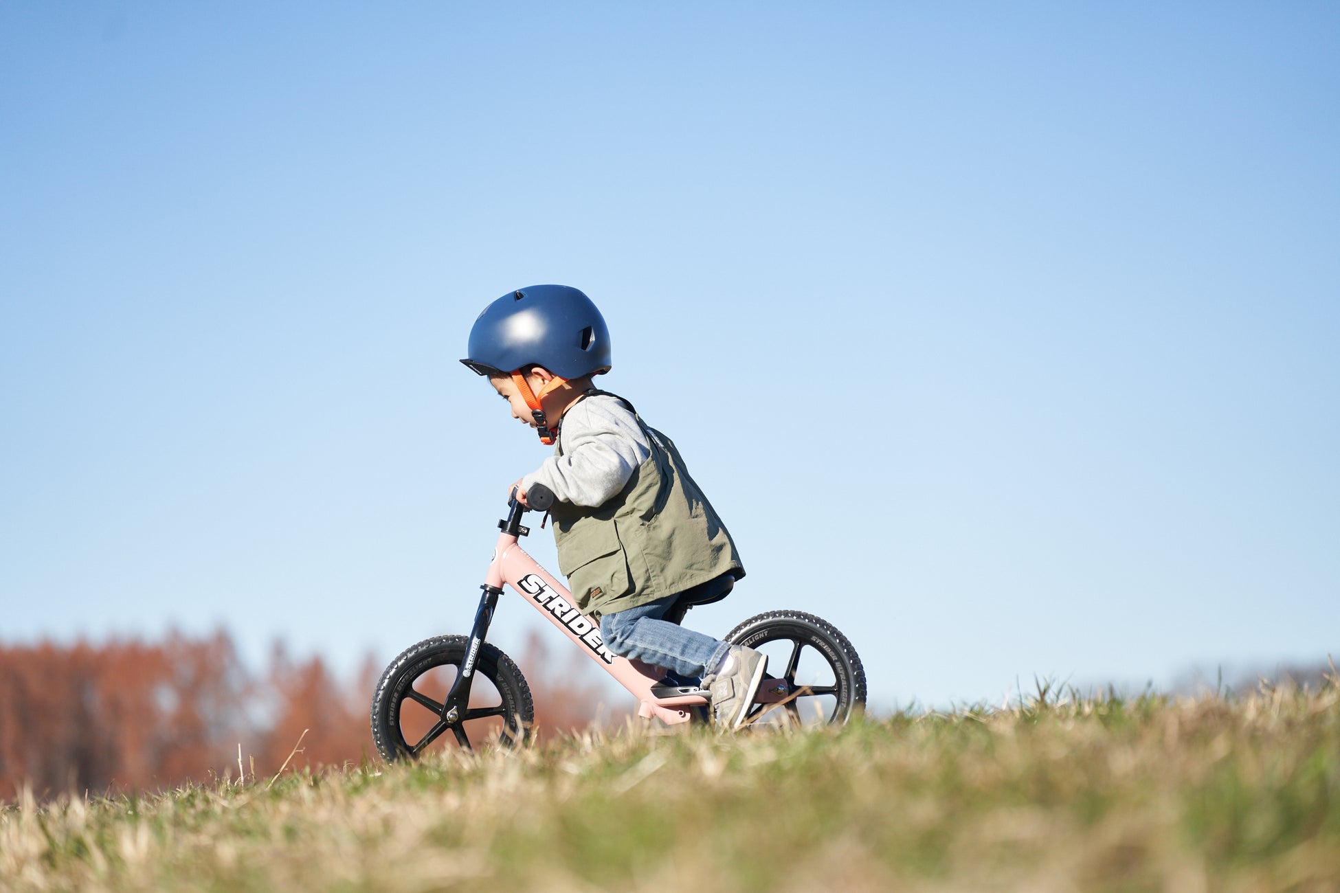 ストライダーは、決して自転車に乗るための単なるステップではありません。自転車と違い、もっと自由な乗り物です。芝生の上や、森の中、砂利道など、場所を選ばず楽しむことができます。それが例え雪の上であっても、ストライダーは子どもたちの好奇心と共に走り続けます。