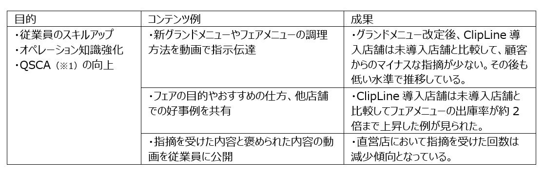 (※1)Quality(クオリティー) Service(サービス)Cleanliness(クレンリネス)Atmosphere (アトモスフィア)の頭文字を取った略語であり、多くの外食企業が採用している基本理念の用語。