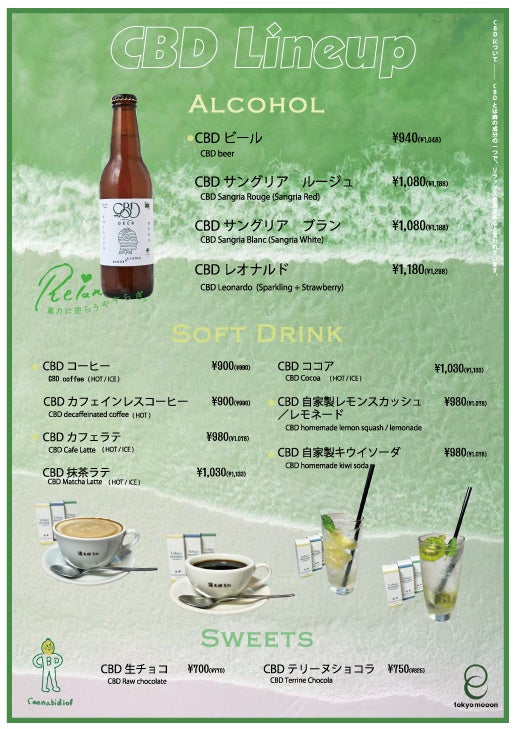 CBDコーヒーや、オリジナルのCBDビールの提供を始め、店頭でもtokyo mooonラインによるCBDオイルの販売を道玄坂カフェにて4月20日より開始する。