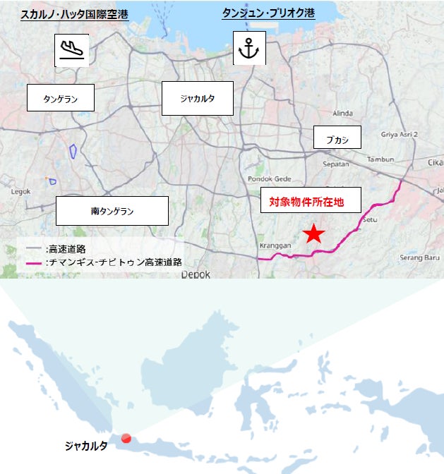 本プロジェクトは、西ジャワ州ボゴール県チルンシに位置しており、チマンギス-チビトゥン高速道路のインターチェンジまでは約4kmの距離にあります。また、タンジュン・プリオク港まで約48km、スカルノ・ハッタ国際空港まで約68kmであり、ジャカルタの主要な港や空港を結ぶ効率的な物流網の提供が可能です。周囲には工業地帯が広がっており、周辺工場からの保管需要が見込まれます。竣工前に多くの多国籍企業や現地企業より関心が寄せられ、既に一部の区画は賃貸借契約を締結しております。