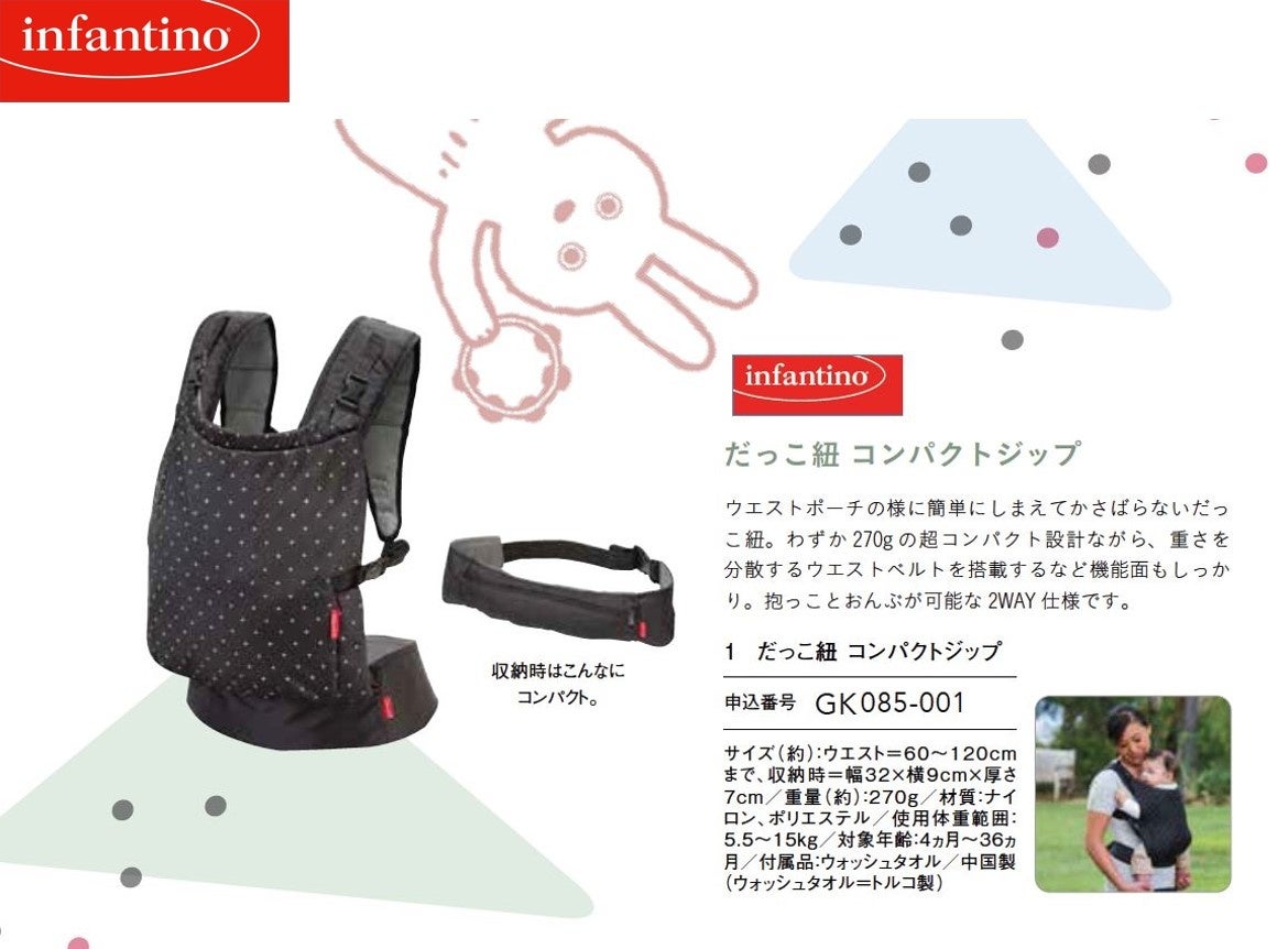 <infantino>だっこ紐 コンパクトジップ(うさぎコース掲載)