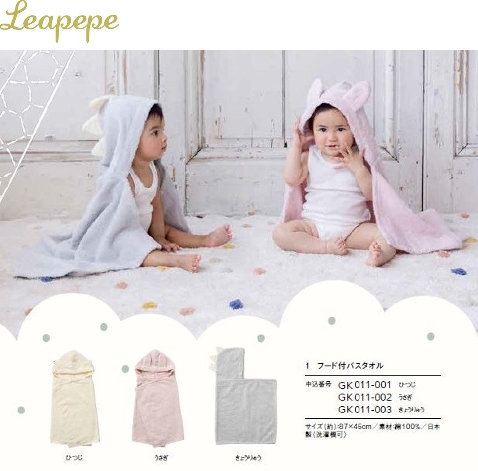 <Leapepe(レアペペ)>フード付バスタオル(うさぎコース掲載)
