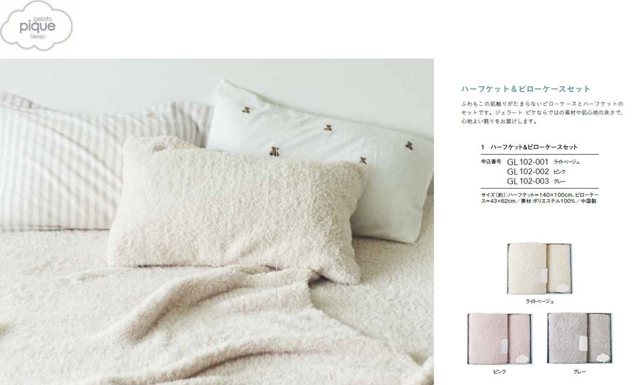 <ジェラート ピケ スリープ>ハーフケット&ピローケースセット(くまコース掲載)