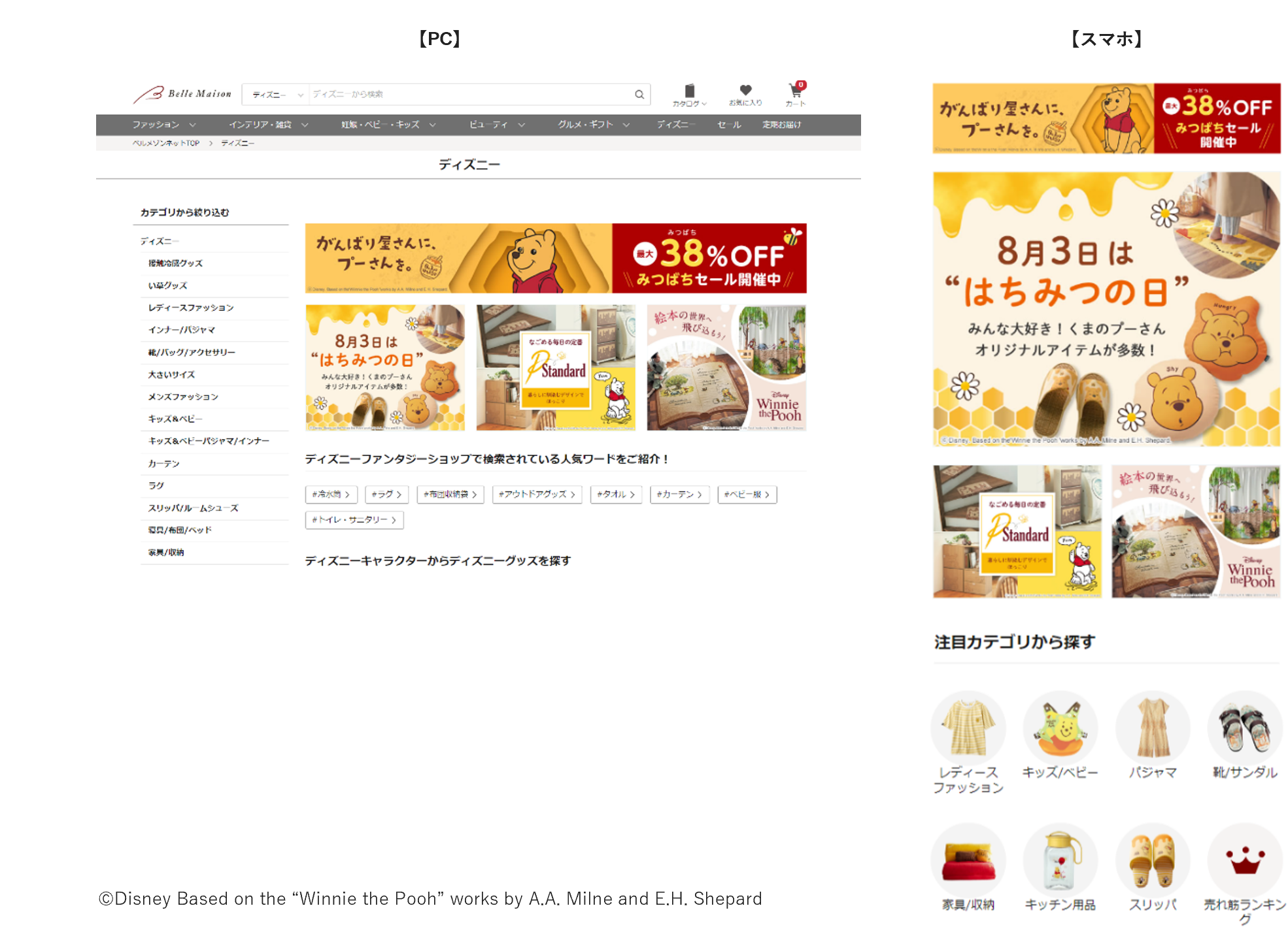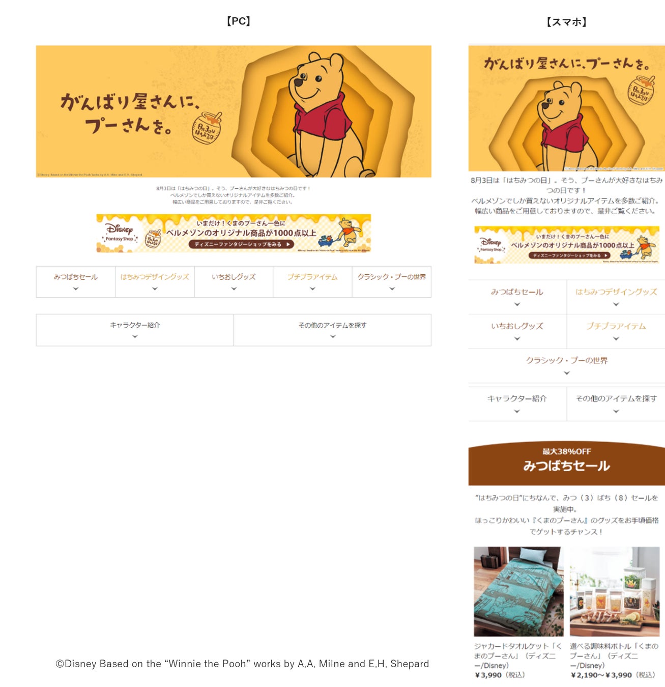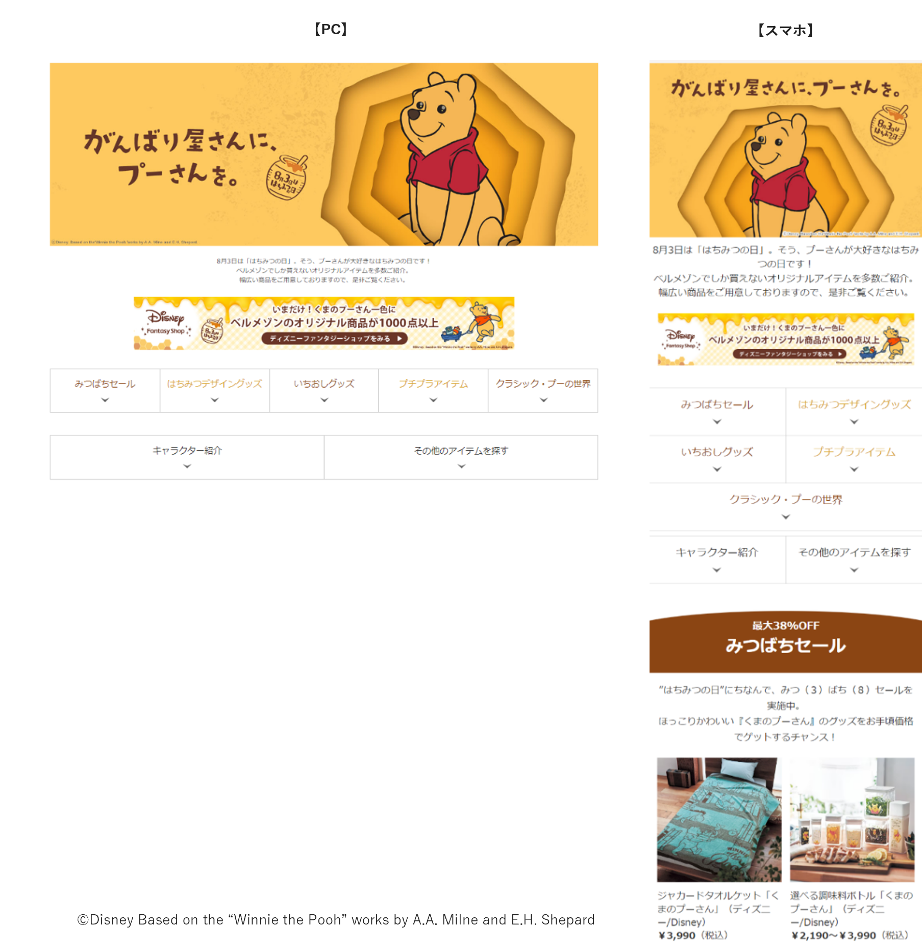 「くまのプーさんグッズ特集ページ」はちみつの日仕様に