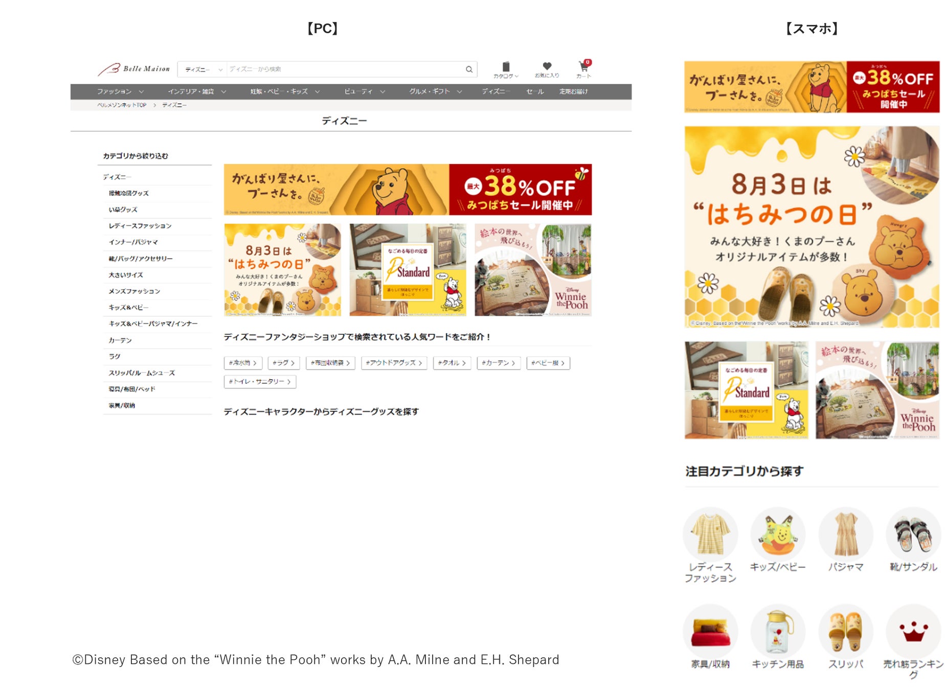 「がんばり屋さんに、プーさんを。」のコンセプトのもと、いつもがんばるすべての方にくまのプーさんグッズで疲れを癒してほしいという想いを込めて、「くまのプーさんグッズ特集ページ」を期間限定で、8月3日「はちみつの日」仕様に。家具や生活雑貨などファンには見逃せない癒しのくまのプーさんグッズをたくさんご紹介しています。くまのプーさんが大好きな甘~いはちみつのように、たまには自分を甘やかしてあげましょう。