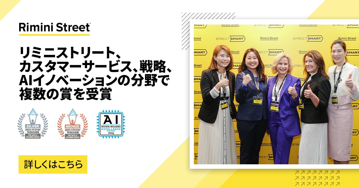 (米国ラスベガス – 2025年4月10日)– エンタープライズソフトウェアのサポート、イノベーションソリューションをエンドツーエンドで提供するグローバル企業であり、Oracle、SAP、VMwareソフトウェアに対する第三者保守サービスの主要なプロバイダーであるRimini Street, Inc. (Nasdaq: RMNI)は、第19回Stevie Awards(セールス&カスタマーサービス部門)およびBusiness Intelligence Groupによる2025 AI Excellence Awardにおいて、複数の賞を受賞しました。