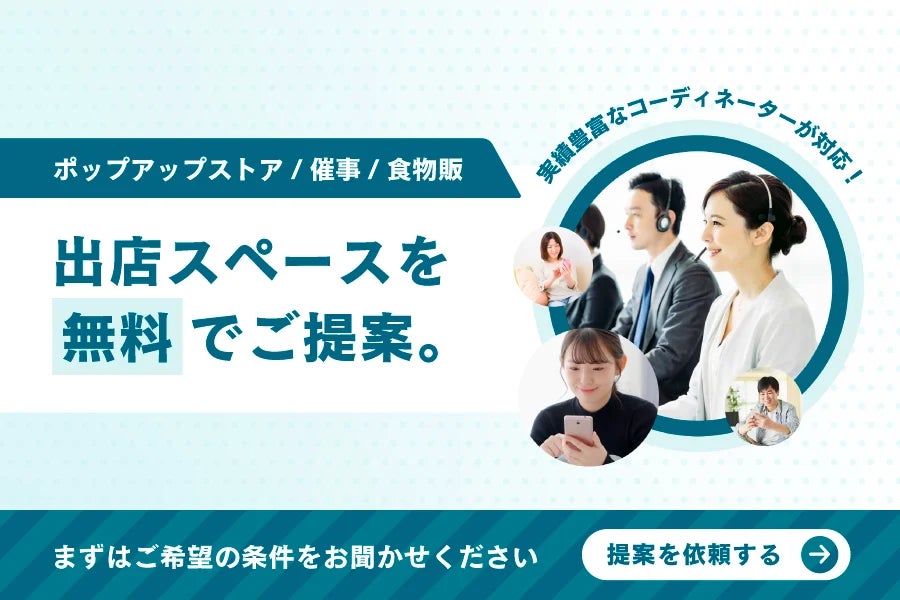 なお、本出店に際しては、ポップアップストアに最適なスペースの選定からスペースオーナーとの出店交渉といった一連の業務をトータルでサポートする「法人向けスペース提案サービス」をご利用いただきました。