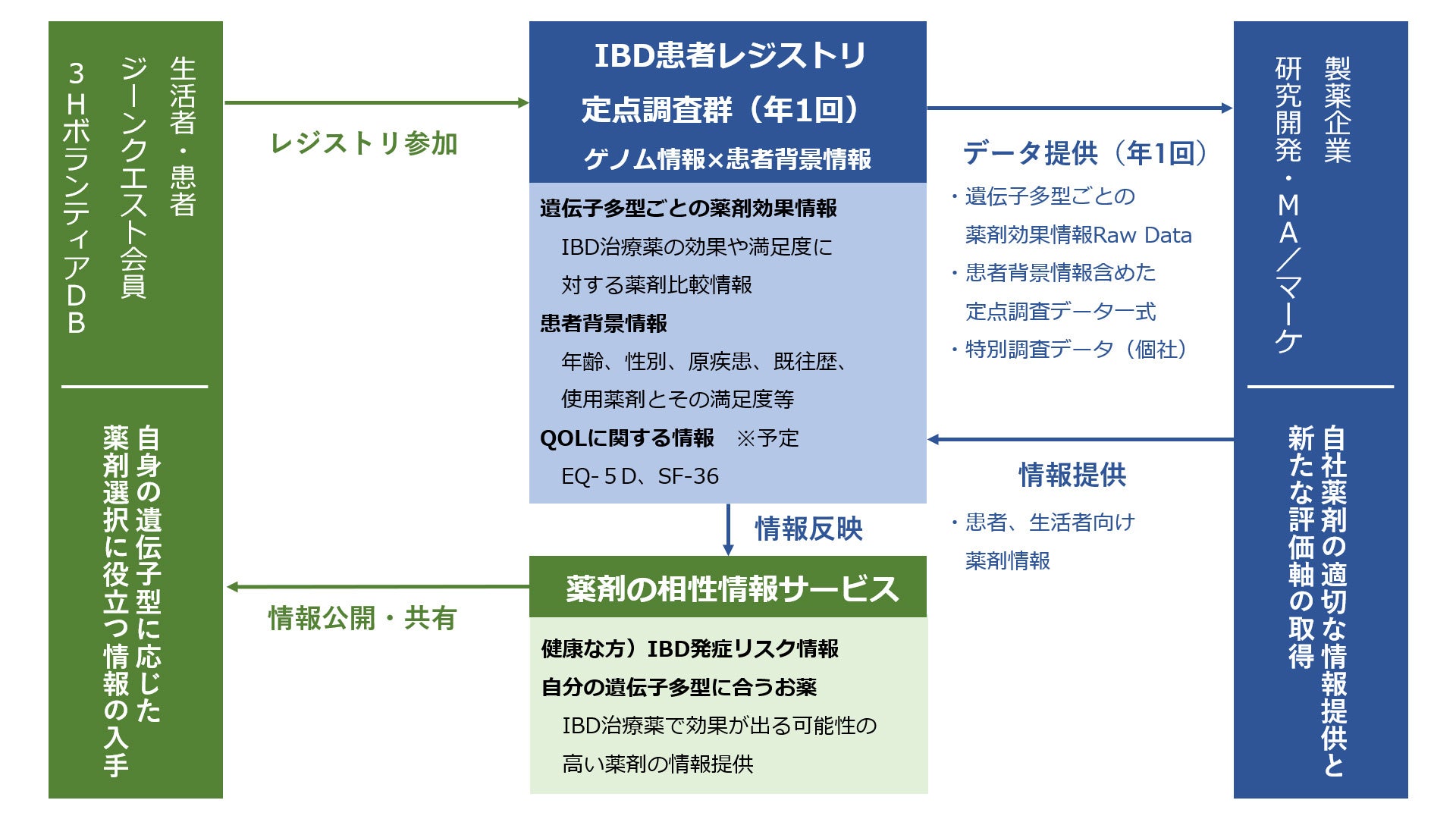 3Hメディソリューションとジーンクエスト、炎症性腸疾患(IBD)の患者レジストリを構築。遺伝子多型ごとに異なる薬剤効果の違いに関する解析情報提供を開始。