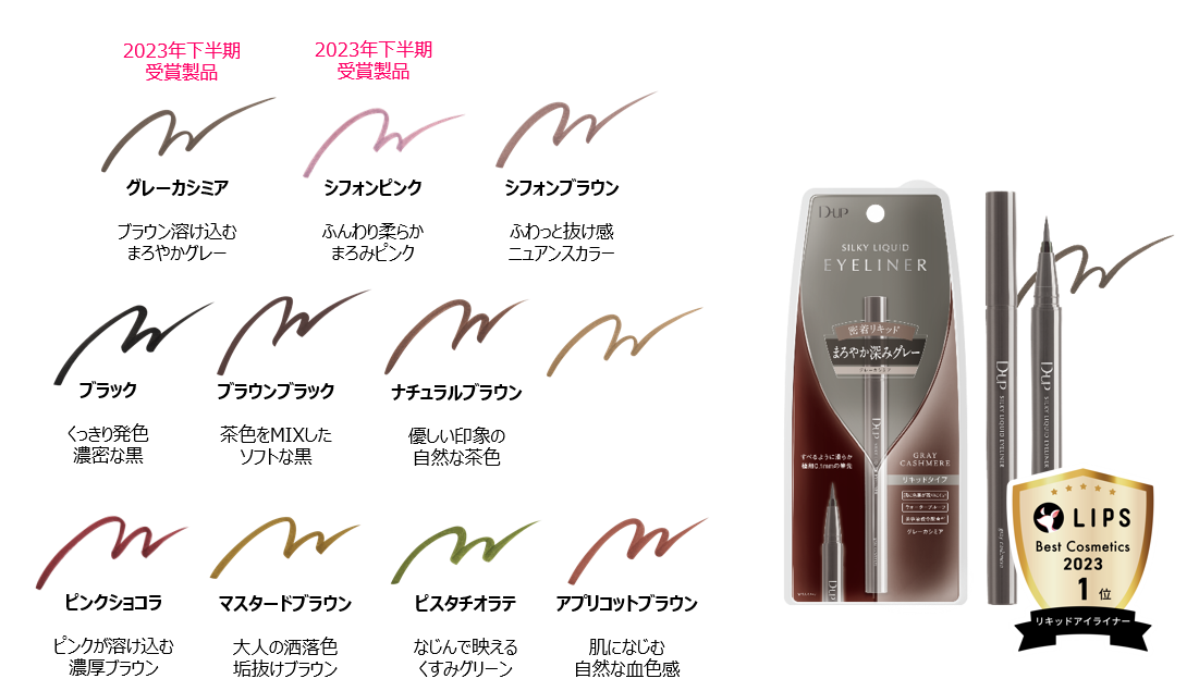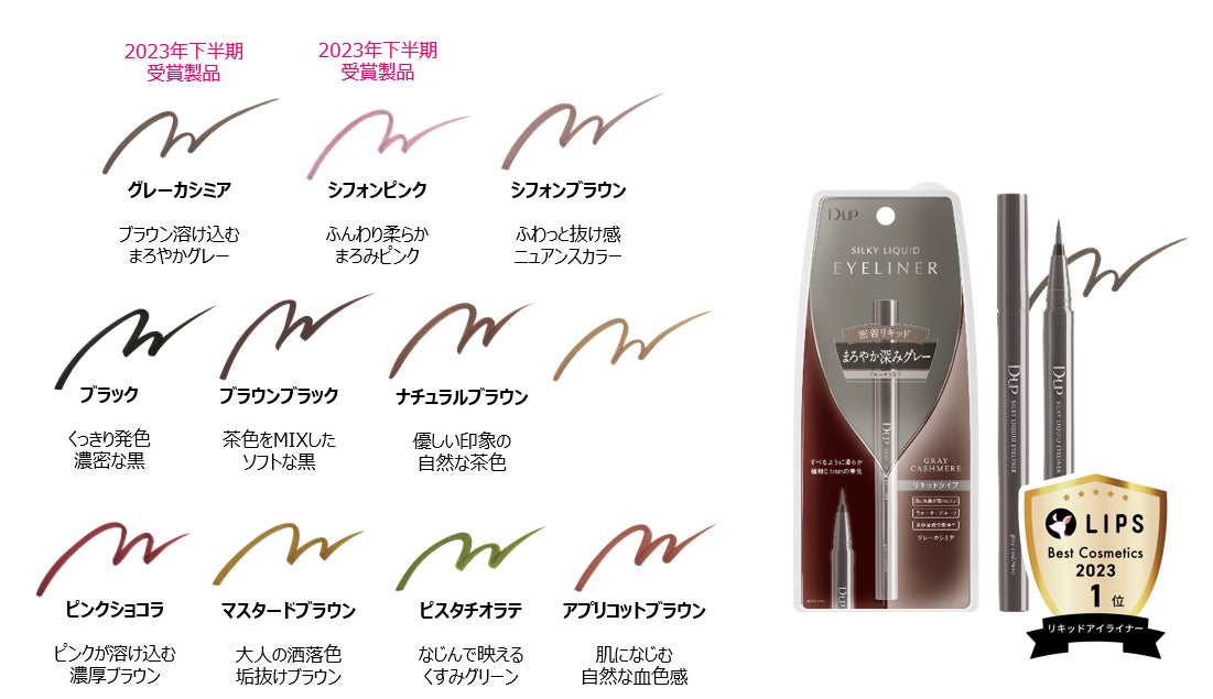 また、日本最大級のコスメ・美容サービスLIPSで、『シルキーリキッドアイライナー(全11色)』がリキッドアイライナー部門で2年連続【1位】*を達成いたしました。