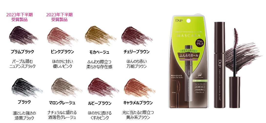 ディーアップ マスカラ&アイライナーシリーズは、パッケージを2020年に一新、そこから新色のマスカラ7種類、アイライナー11種類を続けて発表し、現在マスカラ12種類、アイライナー16種類の全28種類のラインナップを揃えています。