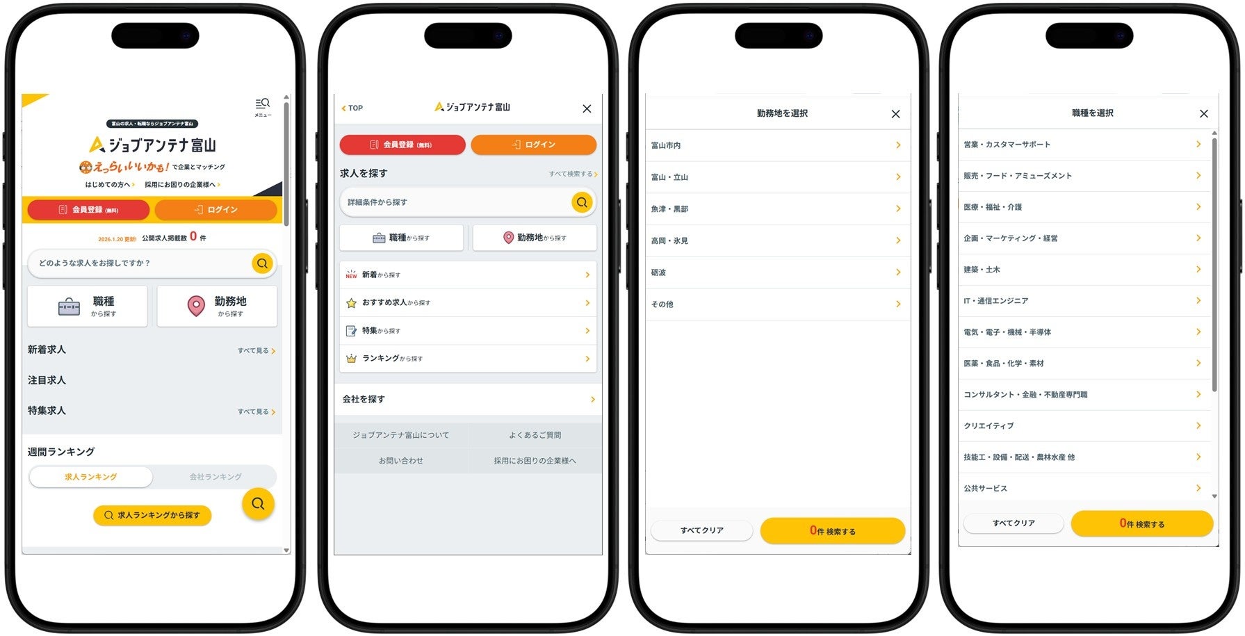 ■「ジョブアンテナ富山」の画面イメージ ※画像は開発中のものです