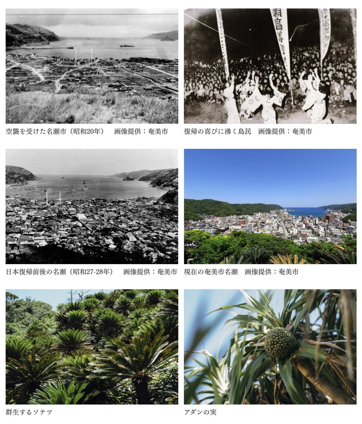 奄美大島について、その特有の文化や風土を自然やものづくりを通した視点で紹介します。奄美はその長い歴史の中で琉球王国、薩摩藩、アメリカ軍の3度の統治を経験してきました。特にアメリカ軍統治下で行われた「日本復帰運動」では、署名活動から始まり、各地で集会や行進、断食など非暴力の運動を島民一丸となって行いました。自由と尊厳を求めたこの訴えは、日本だけでなく世界に届き、悲願の日本復帰を達成させるなど、島民による強い団結力を持って多くの困難を乗り越えた歴史があります。そういった奄美と島民の歩んだ歴史をパネルにて展開いたします。また島の代表的な植物である蘇鉄(ソテツ)やアダンの実も会場内に配置。奄美の自然も感じていただける会場となっています。