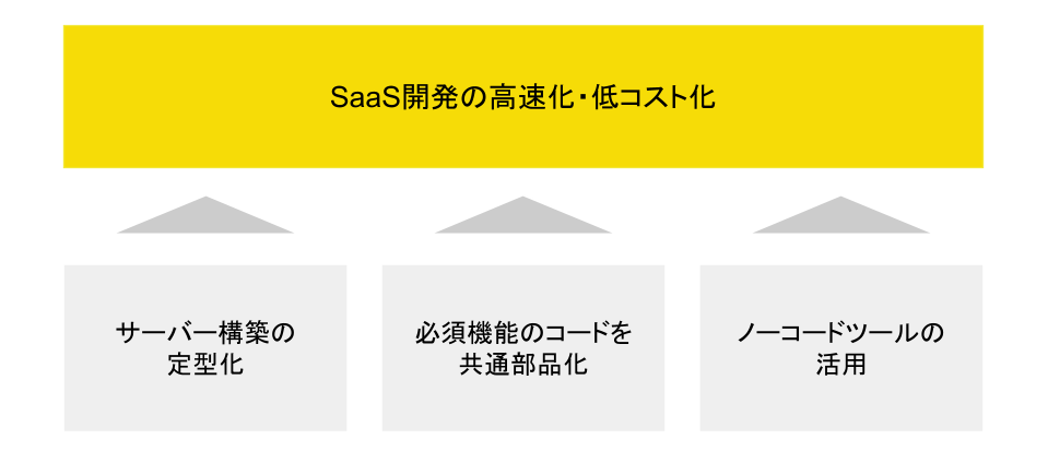 新規プロダクト開発では全く新しいものをゼロから構築するものと考えられがちですが、いくら新規性の高いプロダクトでも全ての開発業務が全く世の中にない新しいものであるわけではありません。Relicは、サーバー構築の大部分やログイン機能、管理画面でのユーザー管理といったSaaSにおける必須機能に対して、AWSサーバー構築の定型化やアプリケーションの再利用可能なモジュールを独自に開発しております。また事業特性によってはSaaSやASPのようなノーコード/ローコードツールを導入して開発期間を短縮している事例もあり、これらを活用することで低コストでSaaS開発に取り組むことが可能です。顧客数が増え始めた際に、管理画面の開発を後回しにしていたために運用に苦労する、セキュリティやサーバー性能など非機能要件の整備を後回しにしたためにシステムが負荷に耐えられずサービスの質が下がるといった問題が頻発しますが、このような問題を防ぎながら事業成長を見据えたシステム開発をリーズナブルな形で実現します。
