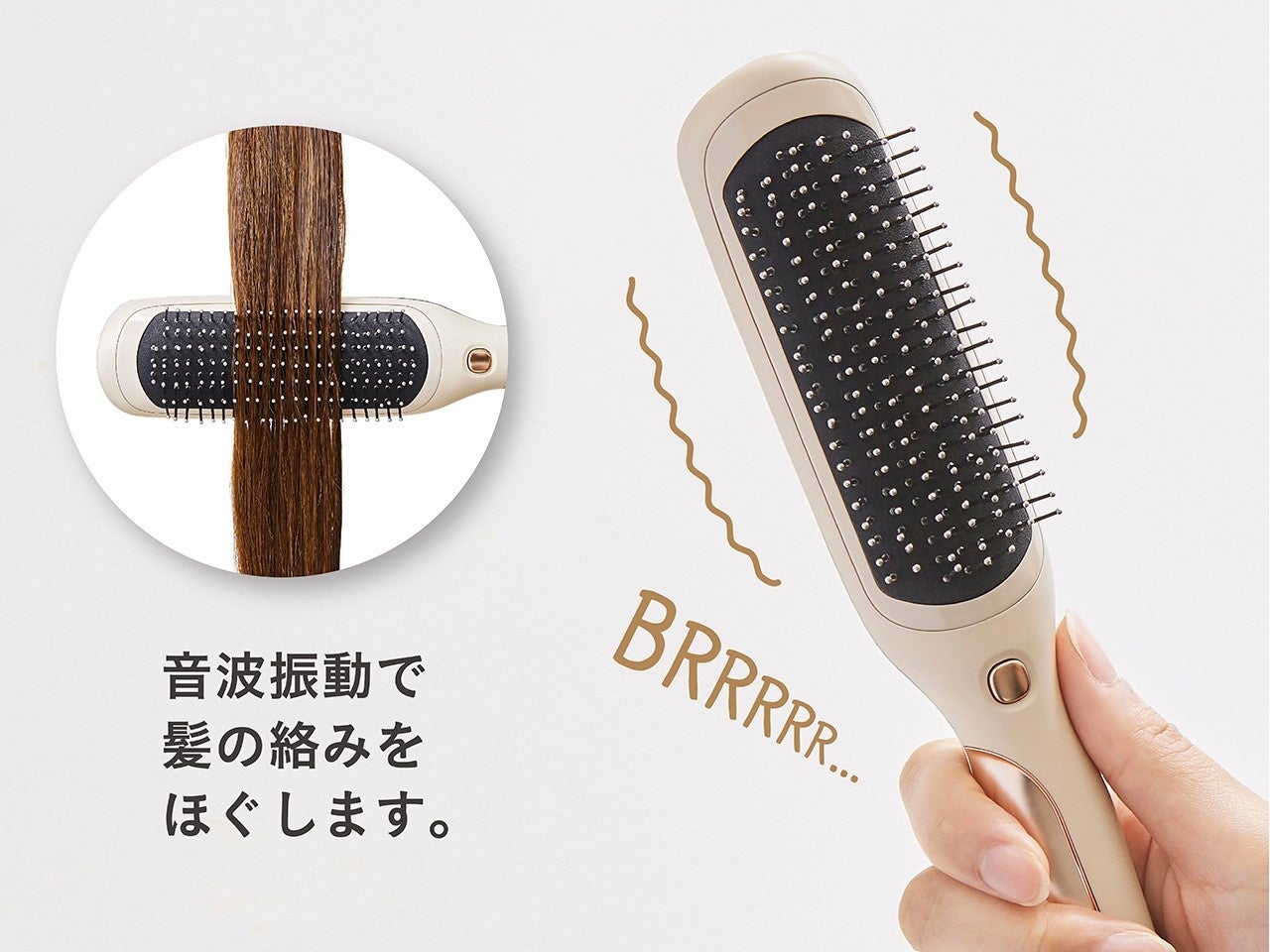 音波振動で髪の絡みをほぐし、クシ通りを滑らかにします。