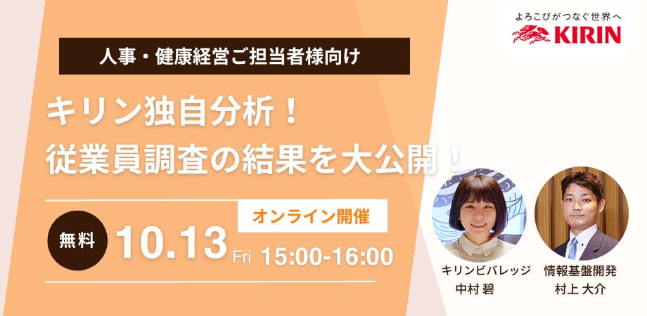 【10/13(金)15時開始】キリン×情報基盤開発共催オンラインセミナー開催。健康経営に向けたキリングループの取り組み事例や、従業員サーベイのポイントなどを解説