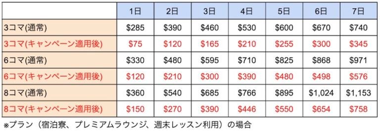 - 超短期留学キャンペーンの詳細:(最大$395お得)