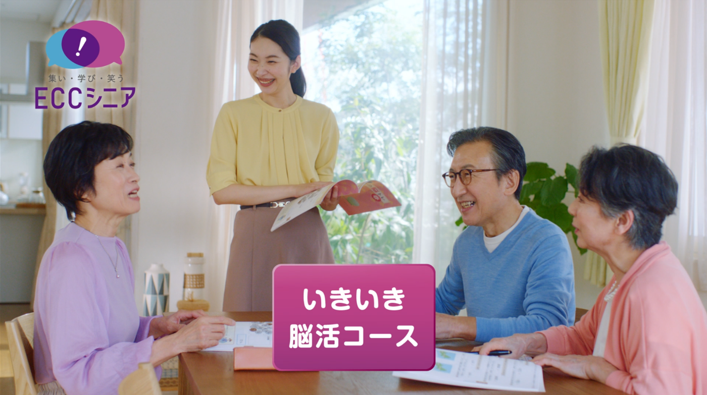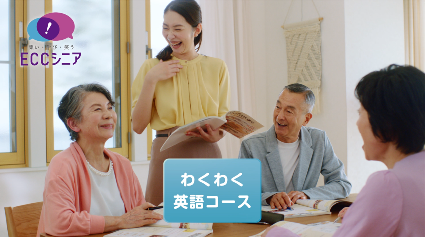 ●CMタイトル:ECCシニア新TVCM『健康寿命 わくわく英語/いきいき脳活』篇(30秒)