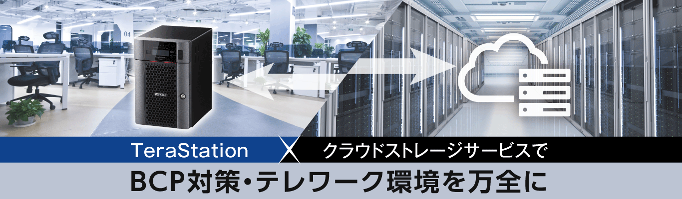 バッファローの法人向けNAS「TeraStationシリーズ」は、バッファローが提供するクラウドバックアップサービス「キキNavi クラウドバックアップ」に加え、各社クラウドストレージサービスと連携可能です。お客様の使用環境・使用目的に合わせて最適なサービスを選択いただけます。