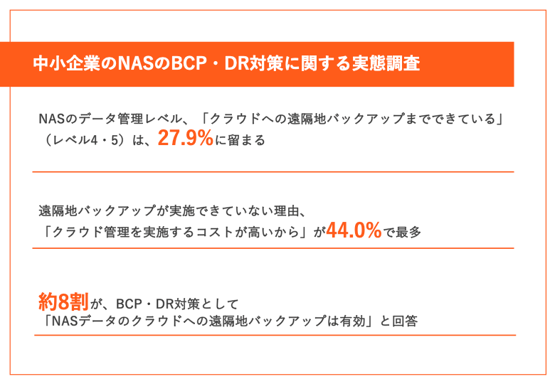 中小企業のNASのBCP対策をレベル別で調査 〜背景には「クラウド管理のコストが高い」といった課題あり〜