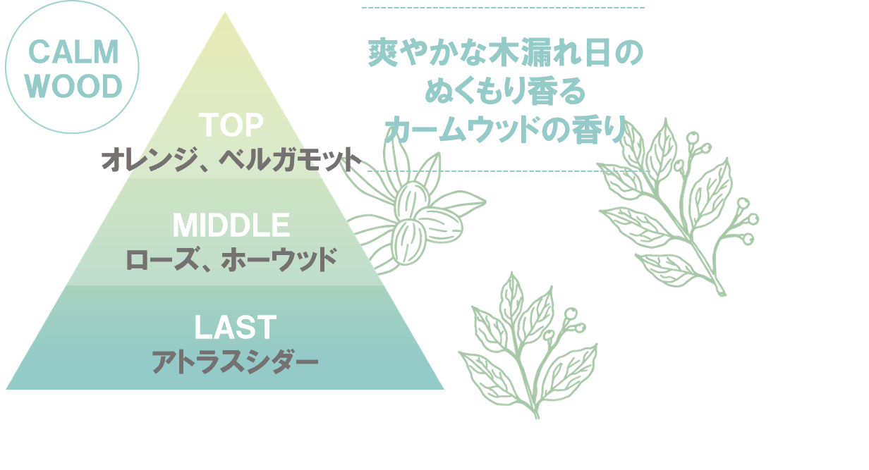 爽やかな木漏れ日のぬくもり香る<カームウッドの香り>