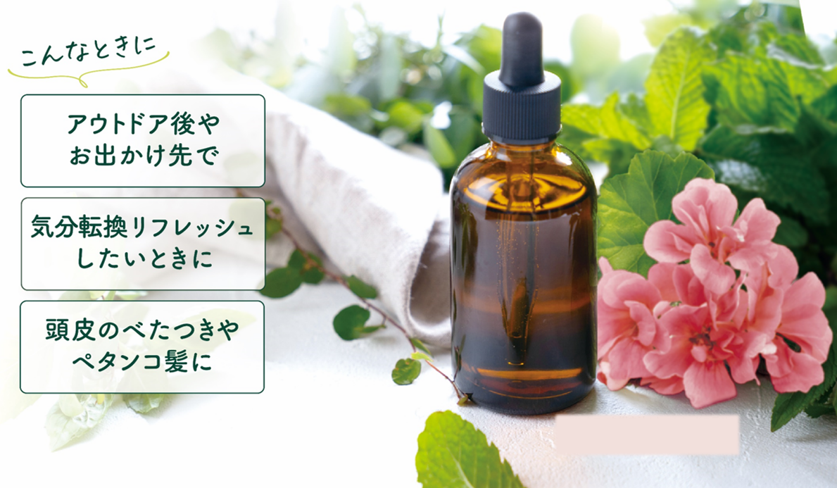 香りは「カームウッドの香り」と「フルブーケの香り」の2種類をご用意。天然精油※を使用した心地よいナチュラルな香りが、気になるニオイを包み込みます。スプレーしてなじませるだけで、髪と頭皮のベタつきを抑え、潤いで満たしてシャンプーしたてのふんわりサラサラな髪に。メントール(清涼成分)配合で、髪も頭皮もすっきりリフレッシュできます。夏はもちろん、アウトドア後やおでかけ先で、頭皮のベタつきやぺたんこ髪が気になる時、気分転換やリラックスしたい時におすすめです。この機会にぜひ店頭で手にとってみてください。
