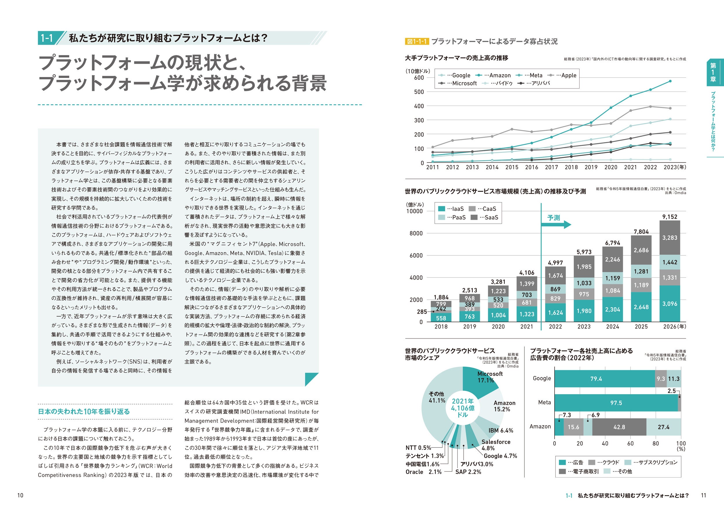 本書は、京都大学のプラットフォーム学卓越大学院プログラムで進められている新しい学問体系「プラットフォーム学」のカリキュラムとともに、プラットフォームに求められる基盤技術、応用技術を紹介。国内企業のプラットフォーム利活用事例や340社以上の取材、同プログラム修了生・履修生の取り組み例を通して、プラットフォームの構築に必要な知識が得られるだけでなく、日本におけるプラットフォームの課題と展望がわかる一冊となっています。