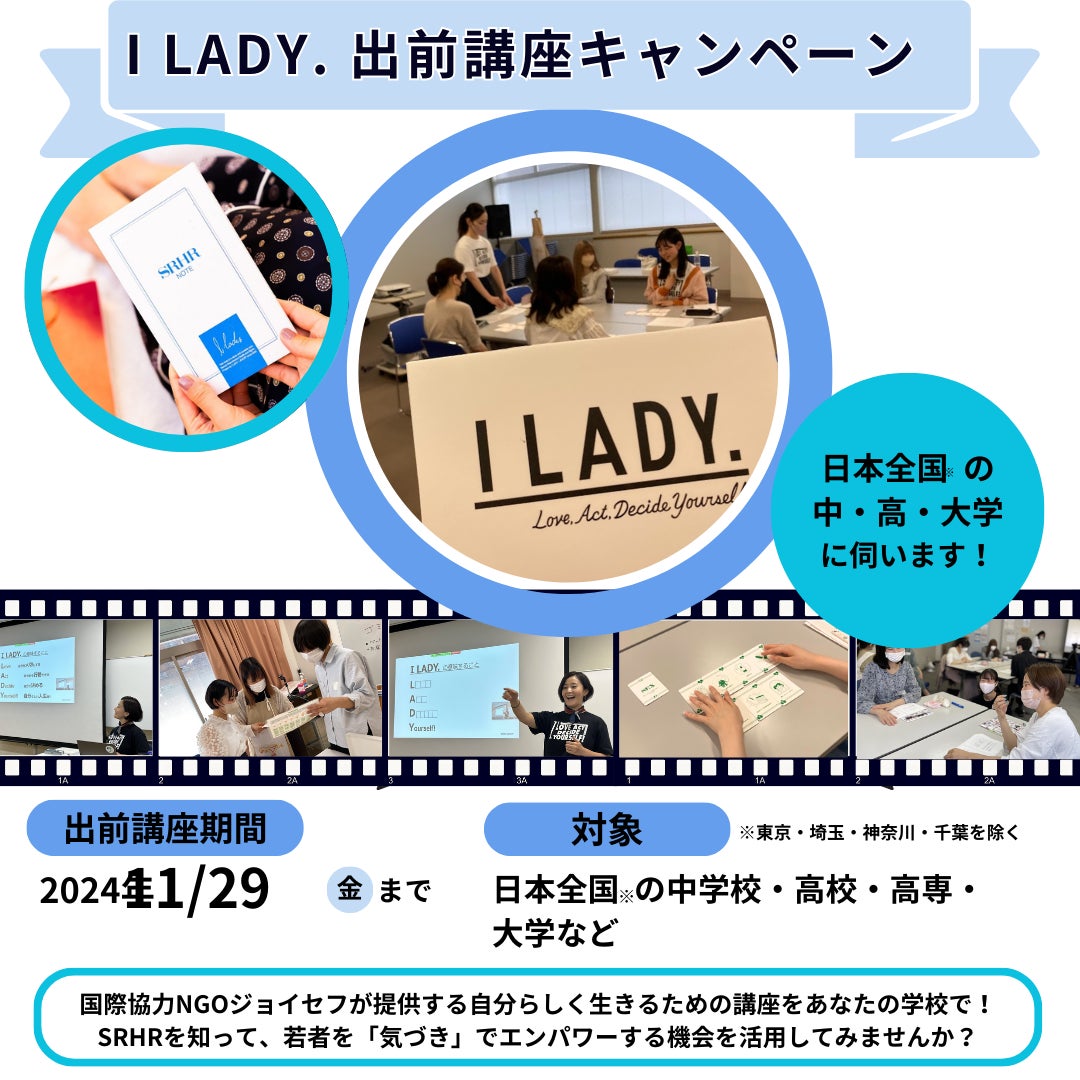 <出前講座> 生きていく上で大切なライフスキル、SRHRを学ぼう!日本全国の中学・高校・大学で、ジョイセフが【I LADY.出前講座】を実施します