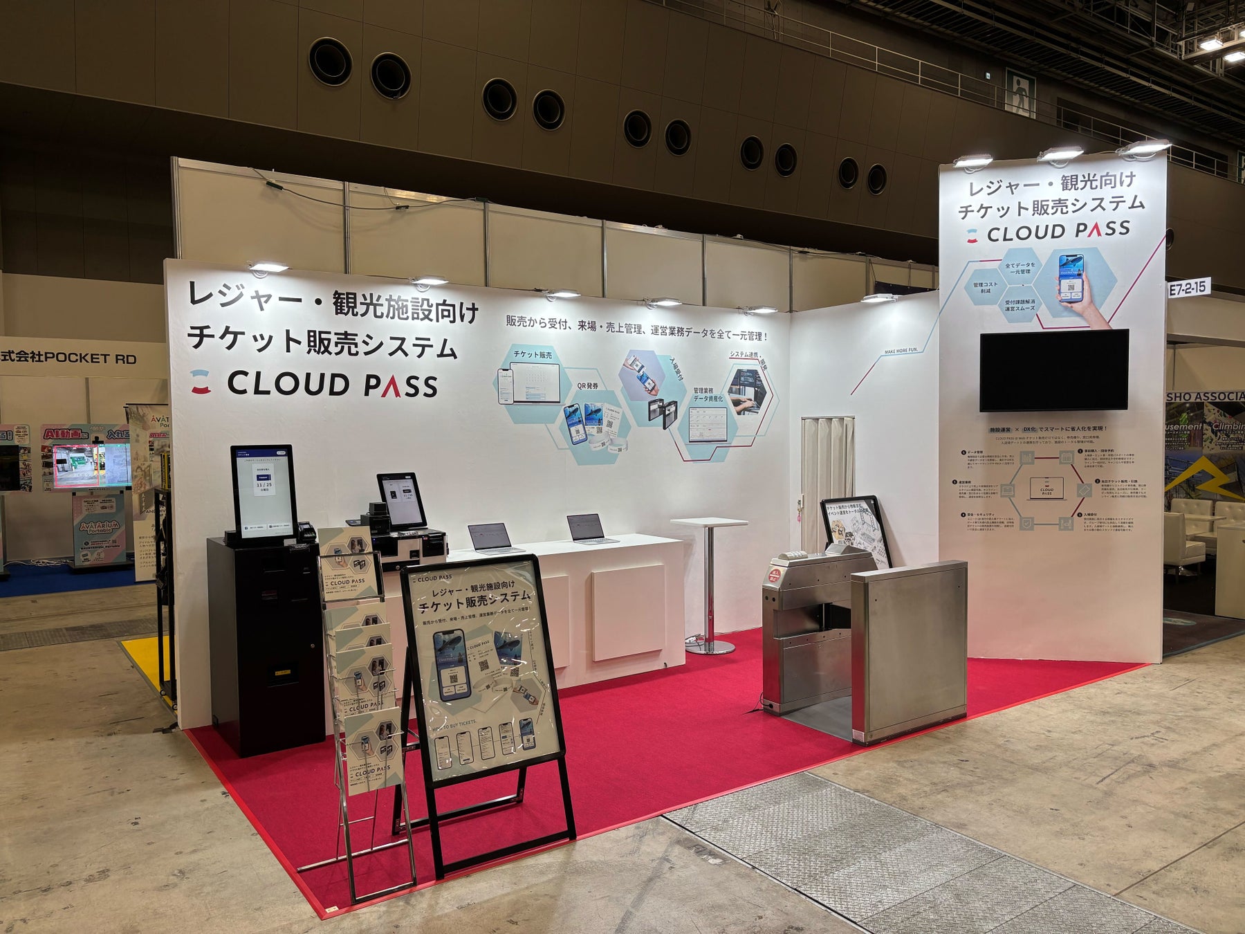 レジャー施設や観光施設向けに、チケット販売システム「CLOUD PASS」の活用例や最新機能の展示を行います。