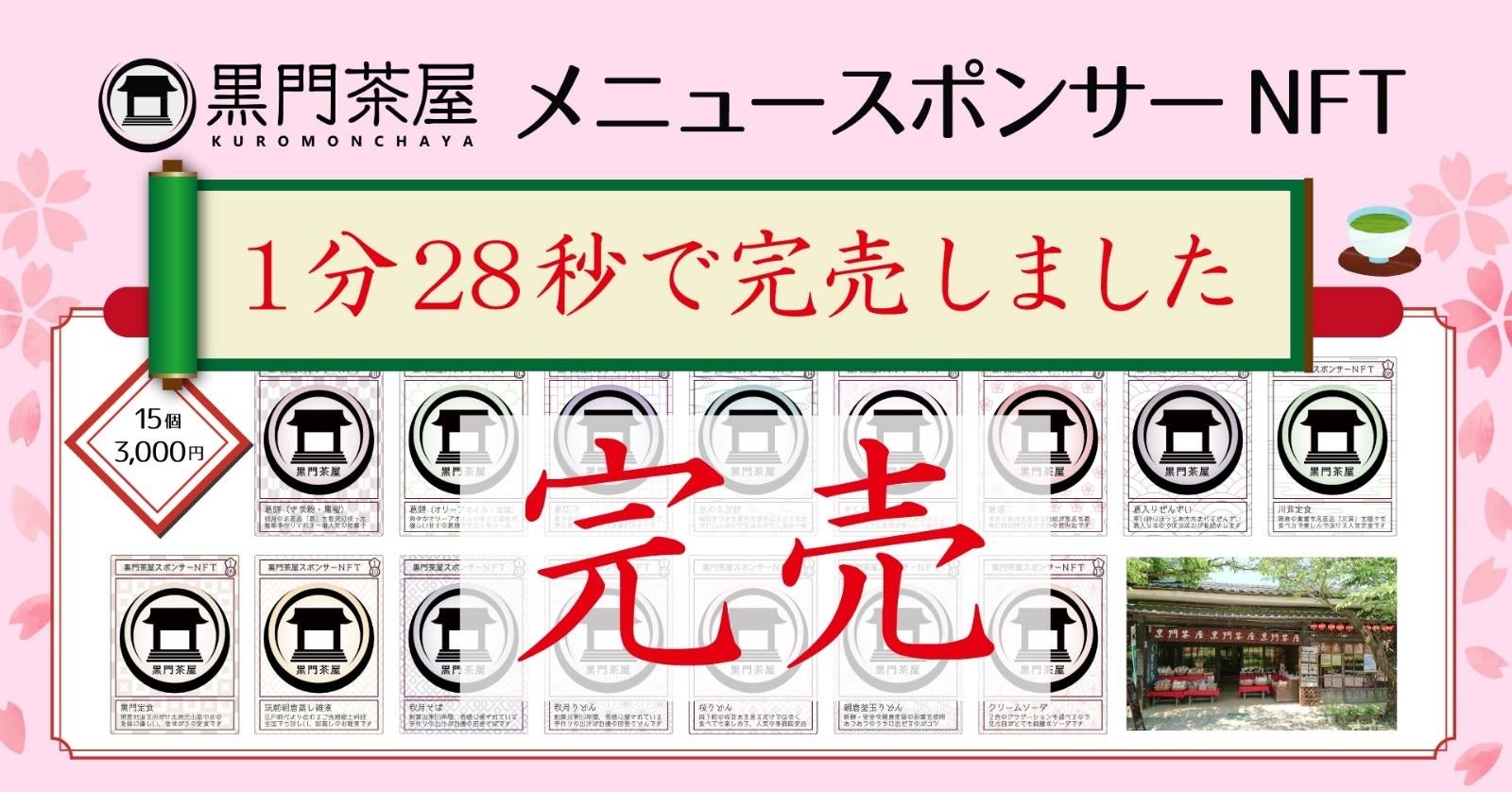 店舗集客にも貢献!【WEB3.0×観光地】開始1分28秒で完売した古民家茶屋「黒門茶屋」メニューのスポンサーNFTセカンドセール販売決定!
