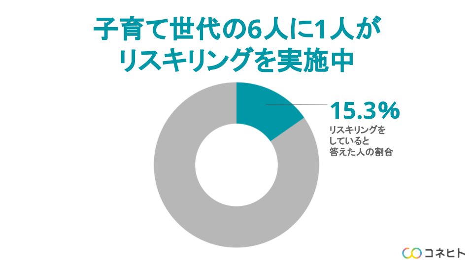 「あなたの家族像が実現できる社会をつくる」をビジョンに掲げるコネヒト株式会社(本社:東京都港区、代表取締役 高橋 恭文、以下「コネヒト」)は、20〜30代の子育て世代を対象に「子育てと仕事に関する調査」を実施しました。当調査では子育て世代の6人に1人がリスキリングをしていると回答。リスキリングに意欲的な子育て世代に対し、国と企業が適切な形で後押しする必要があるという示唆が得られました。