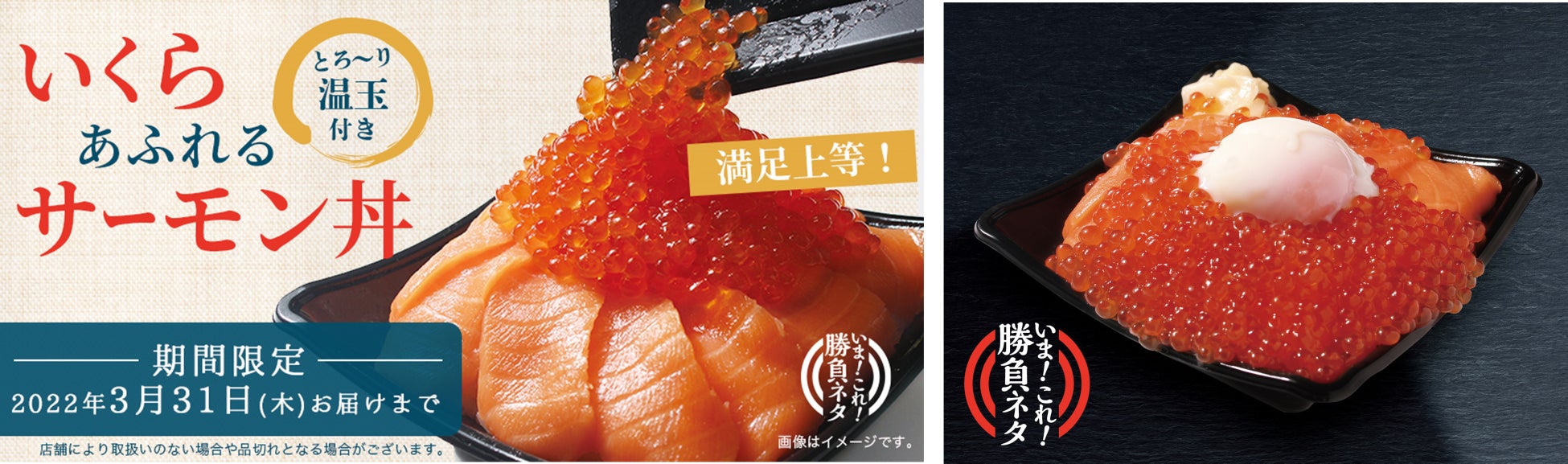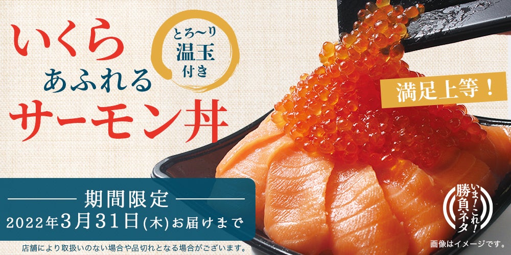 株式会社ライドオンエクスプレスホールディングス(本社:東京都港区、代表取締役社長 江見 朗)は、グループ企業が展開する、宅配寿司「銀のさら」の妹ブランド「すし上等!」において、お客様に「今」食べてほしい特別なネタや食材を使って、特別期間限定で販売する『いま!これ!勝負ネタ』として、”まんぷく感上等!”をテーマにした『いくらあふれるサーモン丼』を、2022年2月1日(火)~3月31日(木)の期間、公式WEBサイトで販売いたします。