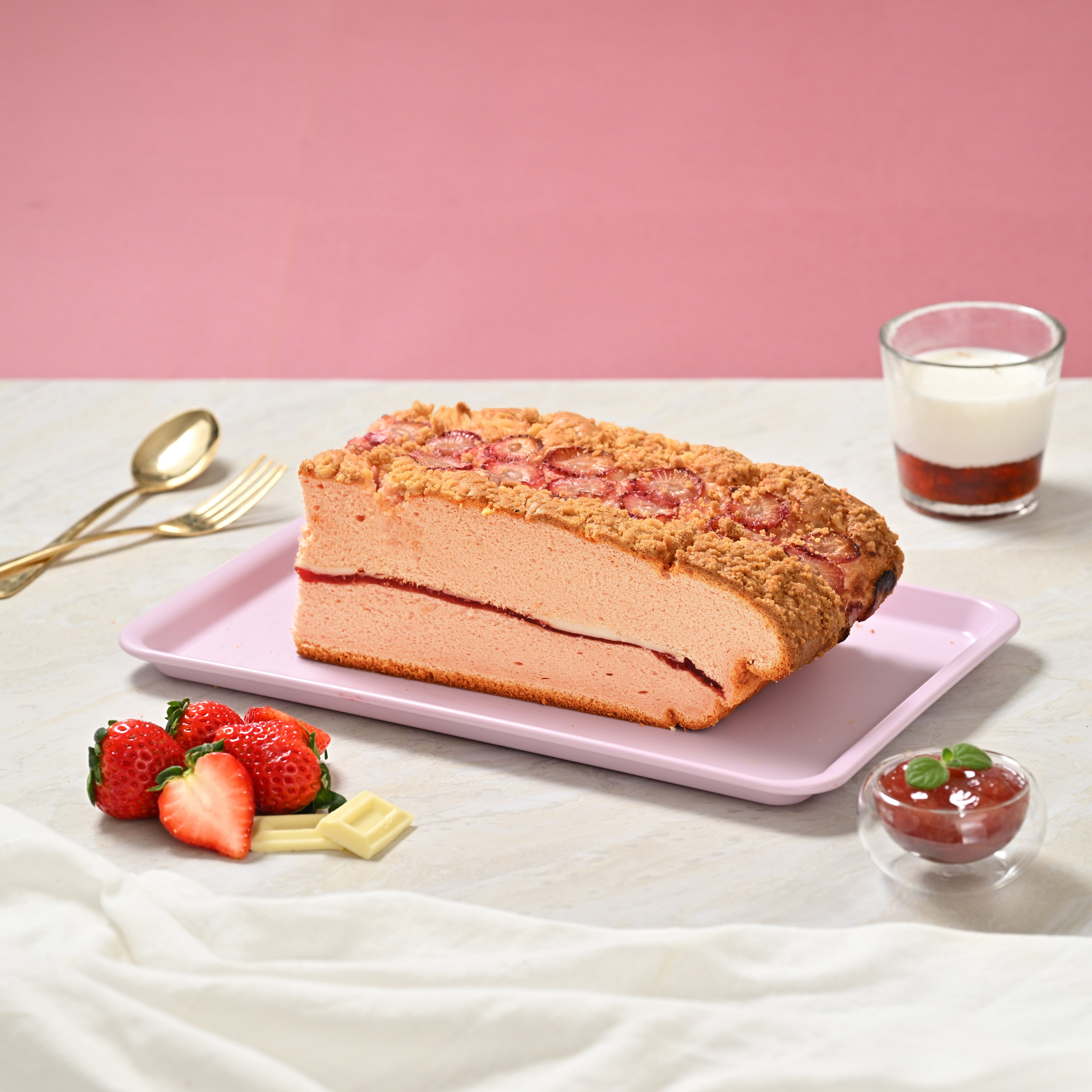 いちご風味のふんわり生地に、バター香るクランブルと甘酸っぱい苺の果肉をたっぷりトッピング。中には練乳ミルクシートといちごペーストをサンドし、甘みと酸味が絶妙に重なる贅沢な味わいに仕上げました。2025年で1番売れた商品です。