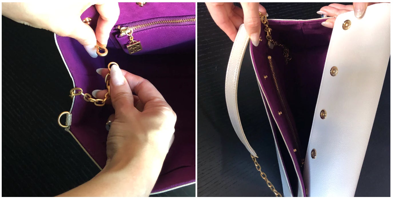 ・チェーンストラップは7段階で長さ調整可能。斜め掛けからハンドバッグスタイルまで、多彩な持ち方が楽しめます。