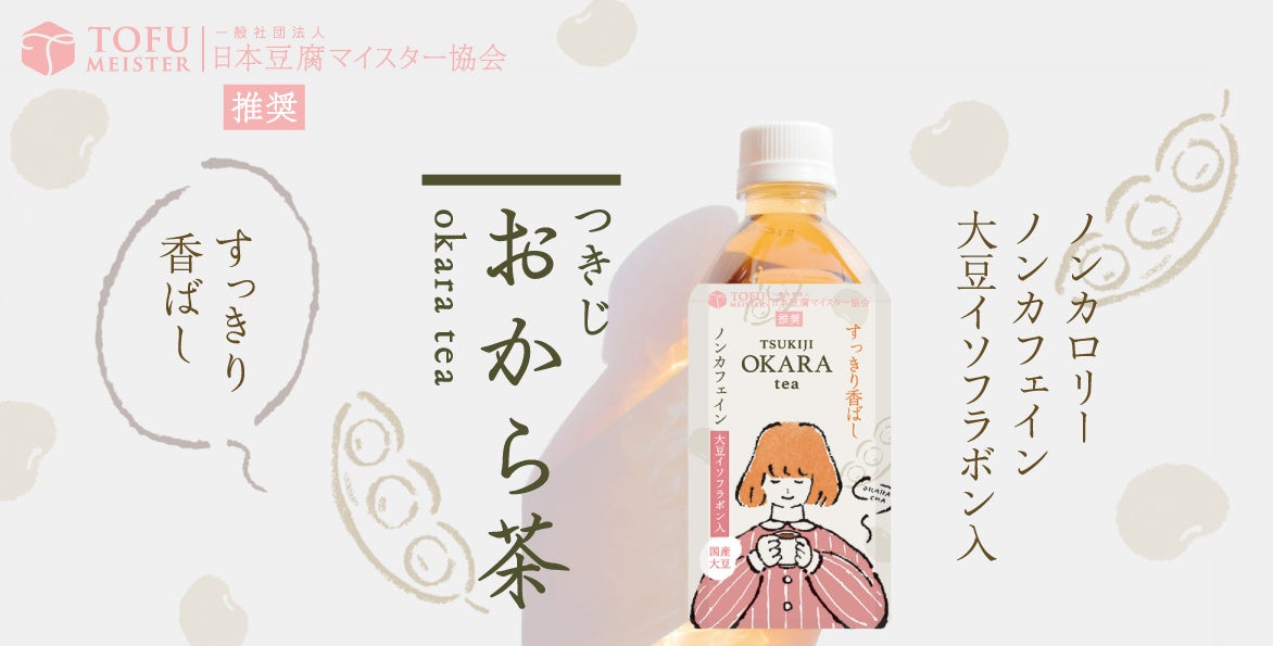 またつきじおから茶は、すっきりと飲みやすく、ノンカフェイン、ノンカロリー、イソフラボンも配合されているので、女性が多い豆腐マイスター協会ではとても愛される存在となっています。多くが産業廃棄物として処理されているおからの、新たな可能性を秘めるつきじおから茶の魅力を豆腐マイスターの皆さんとともに広めていきたいと思っております。