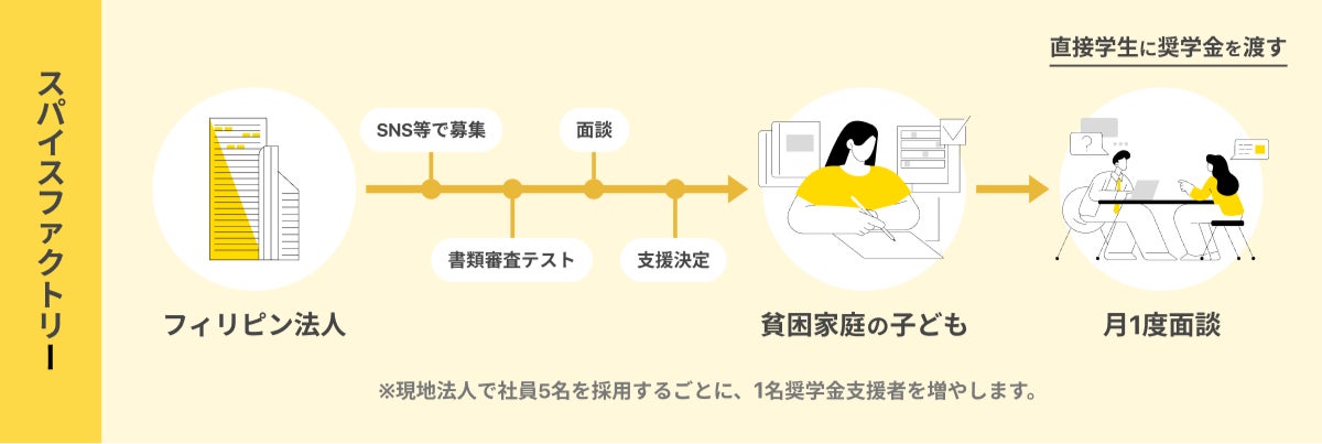 デジタル・トランスフォーメーションを⽀援するスパイスファクトリー株式会社(本社:東京都港区、代表取締役CEO:高木 広之介)は、フィリピンの現地法人を通じて貧困家庭の子どもに対する独自の就学・生活サポート奨学金制度を2023年より運営。2025年10月時点で、合計5名の学生の支援を継続しています。