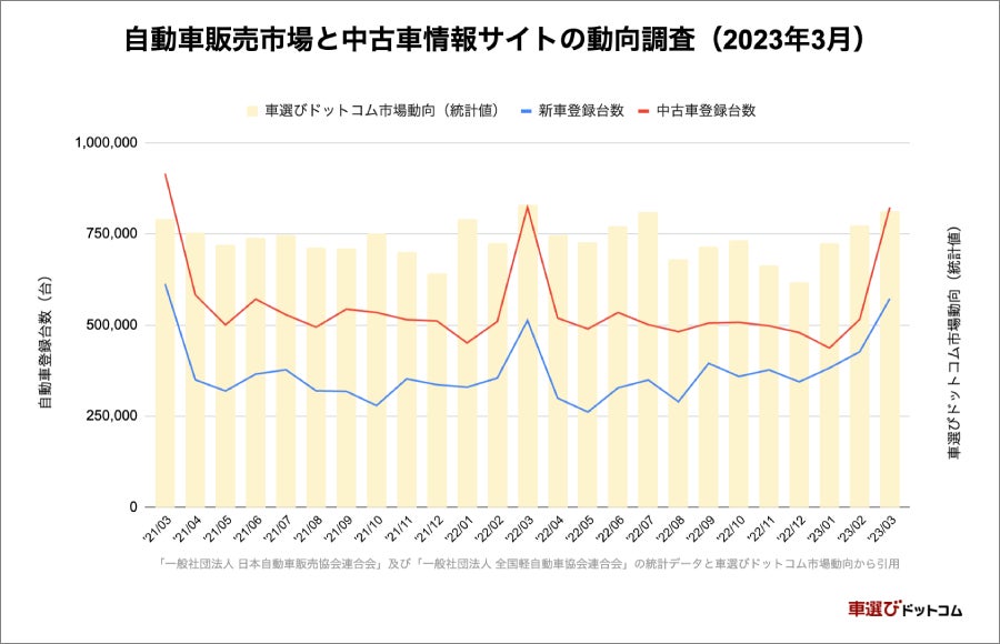 中古車情報サイト「車選びドットコム」の動向(2023年3月)