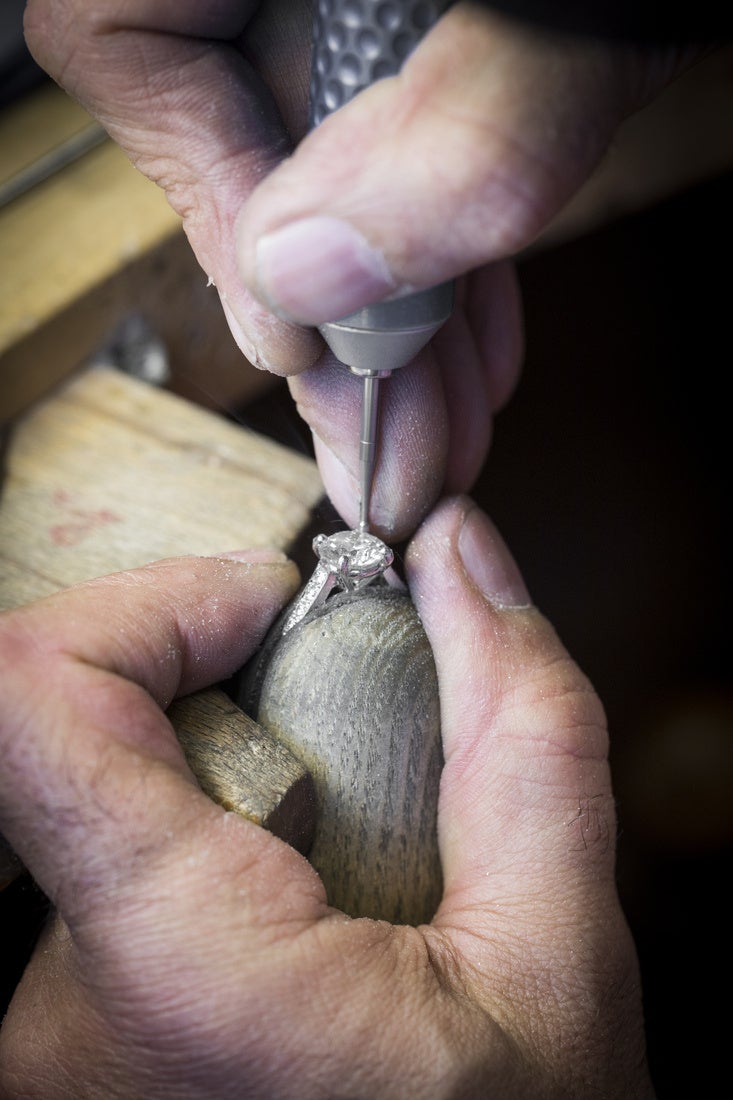 また、ヴァン クリーフ&アーペル専属の宝石鑑定士は世界にひとつだけの特別な貴石を用いてユニーク ソリティア リングを制作します。クラリティ(透明度)は FL~VVS2、カラーはD、E、のみという最も厳格な基準で最高品質のダイヤモンドのみを選び抜き、作品に独特な輝きを与えます。すべてのソリティア、マリッジリングのひとつひとつに宝飾職人やセッティング職人、研磨職人らのさまざまな技が集結し、ヴァン クリーフ&アーペルが描き出す魅惑あふれる世界と結びつくことで、世界にひとつの輝きを宿します。