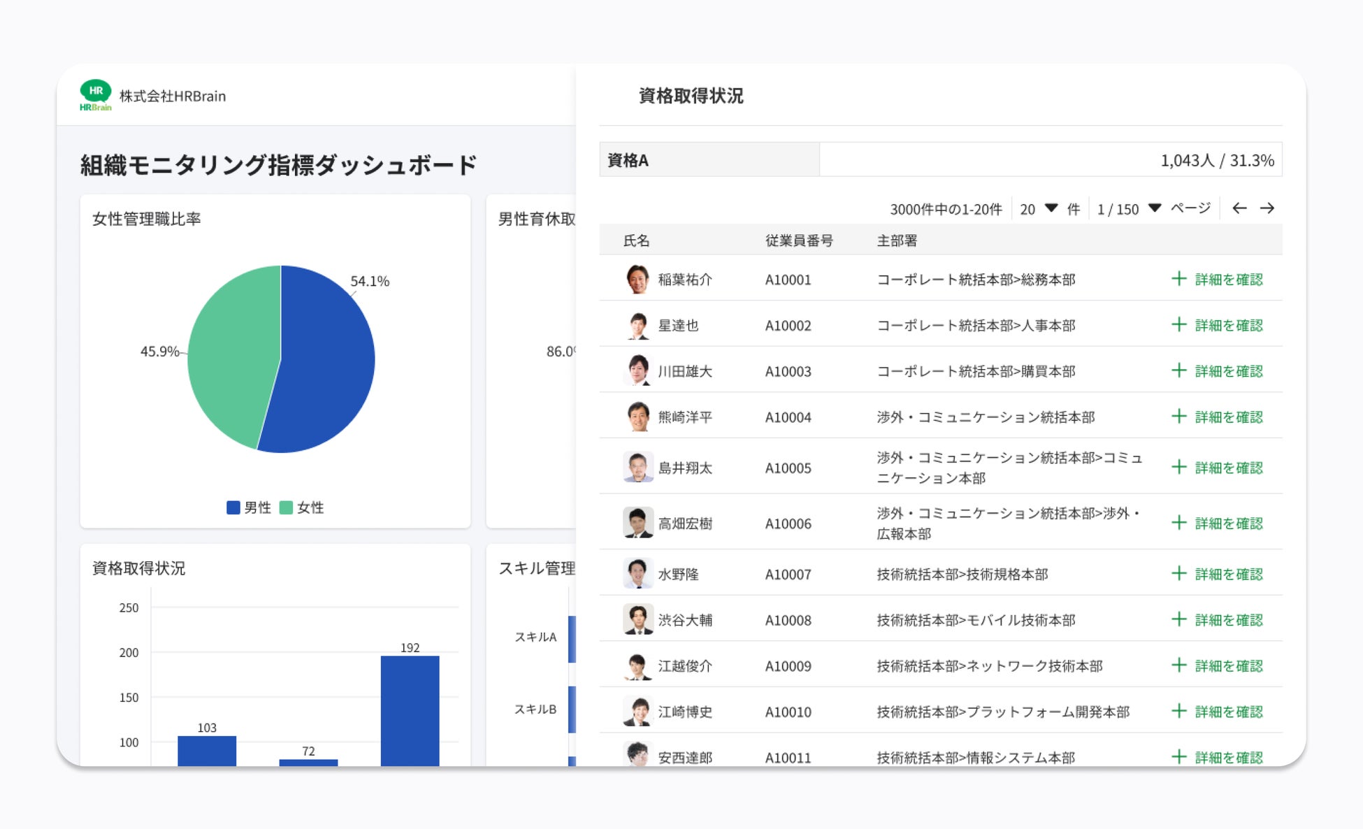 本機能により個社に合わせた人材データの可視化が可能になり、自社の人的資本に関するKPIを集約し、進捗把握やデータ共有の簡易化を実現します。