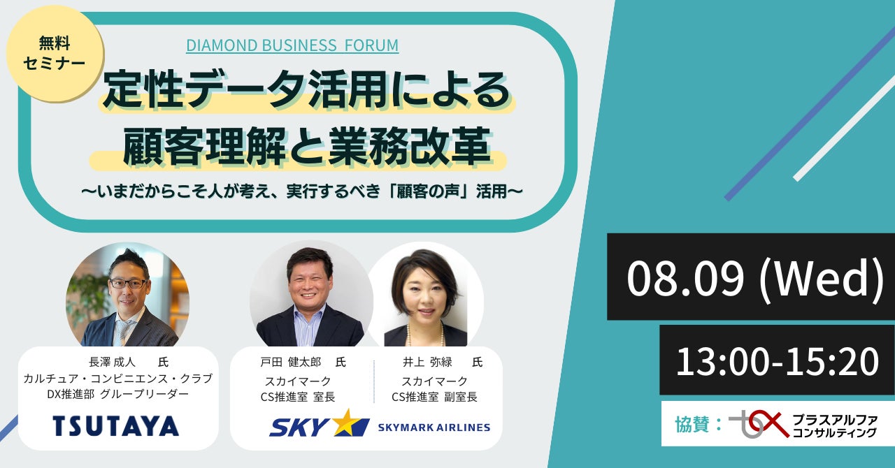 カルチュア・コンビニエンス・クラブ、スカイマークが登壇「定性データ活用による顧客理解と業務改革 ~いまだからこそ人が考え、実行するべき「顧客の声」活用~」を8/9に開催