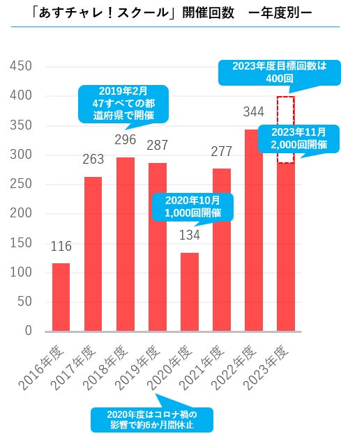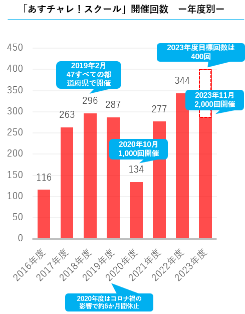 2016年度からこれまでの「あすチャレ!スクール」実施実績