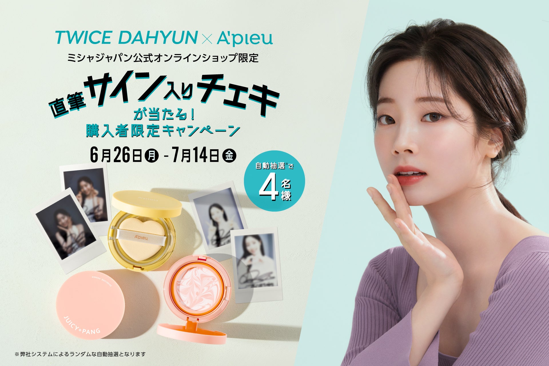 アピューミューズTWICE ダヒョンの”直筆サイン入りチェキ“が当たる!公式オンラインショップ限定キャンペーン