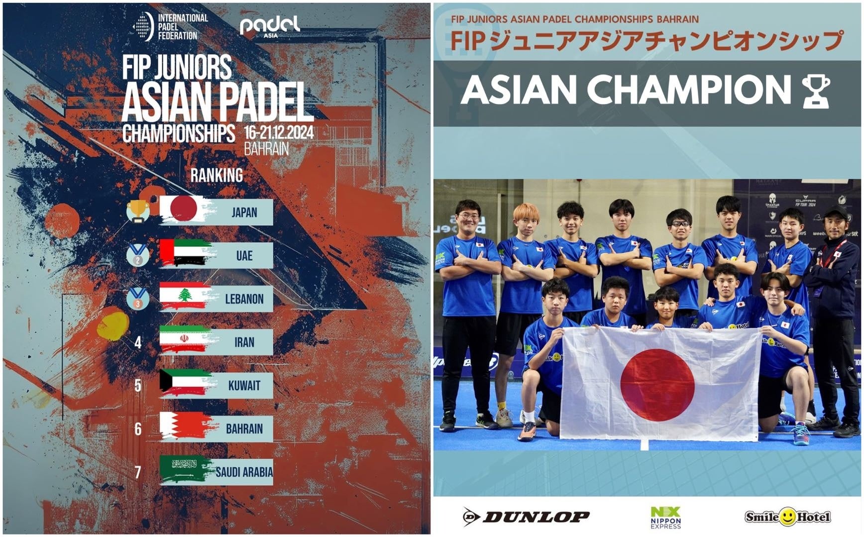 一般社団法人日本パデル協会(以下 JPA)は、2024年12月16日~12月21日にバーレーンで開催されたパデル ジュニア アジア杯「FIP JUNIORS ASIAN PADEL CHAMPIONSHIPS BAHRAIN」に男子パデル ジュニア 日本代表メンバー11名(3カテゴリー U-18:4名、U-16:4名、U-14:3名)を派遣いたしました。今大会において、日本は優勝という戦績をおさめ、アジアNo.1の称号を手に入れました。