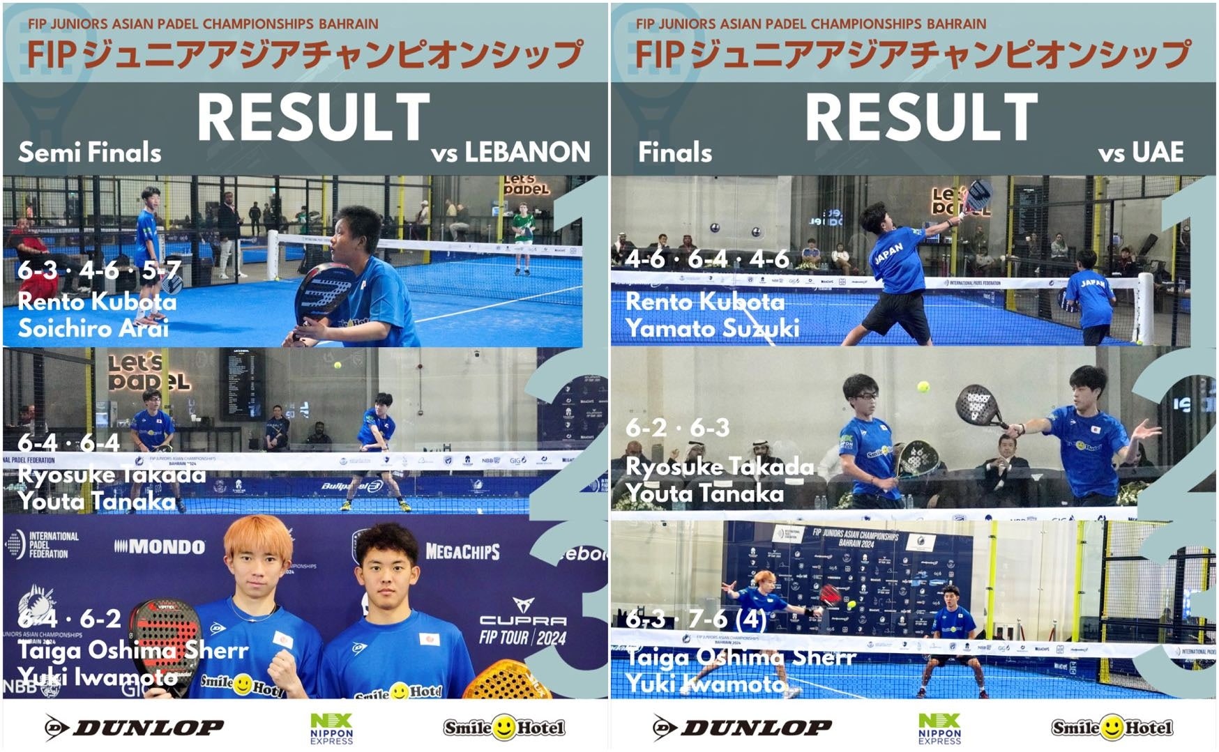 アジア杯「FIP JUNIORS ASIAN PADEL CHAMPIONSHIPS BAHRAIN」では、日本が優勝、ドバイが準優勝という結果になり、昨年のリベンジを果たすことができました。