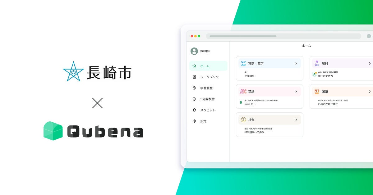 学習eポータル+AI型教材「Qubena(キュビナ)」長崎県長崎市で採用 〜市内の全小中学校105校へ導入、約2万7千人が利用〜