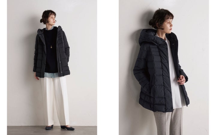 暖かいのにスッキリ見え。超軽量・極暖アウターをおすすめスタイリングを交えご紹介致します。