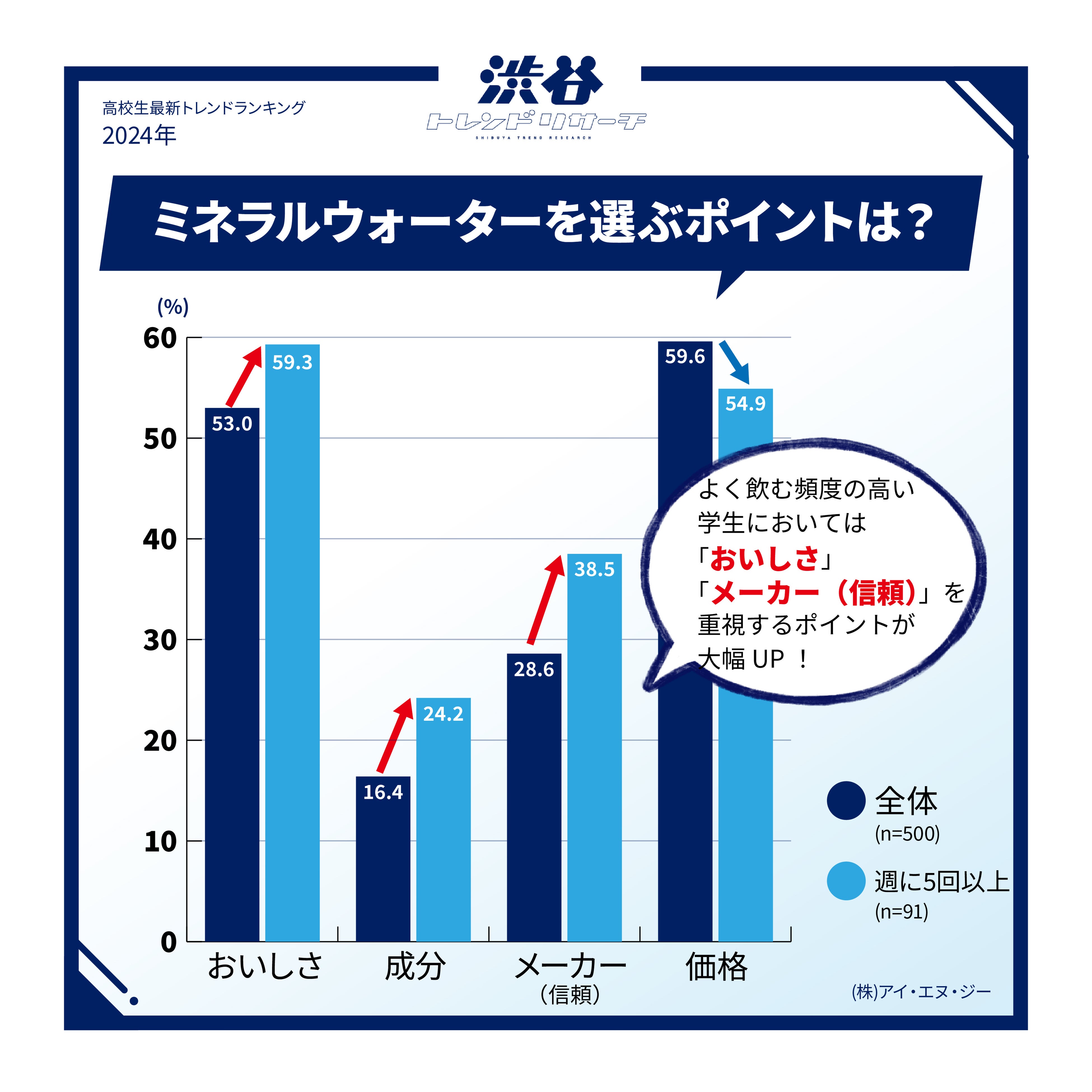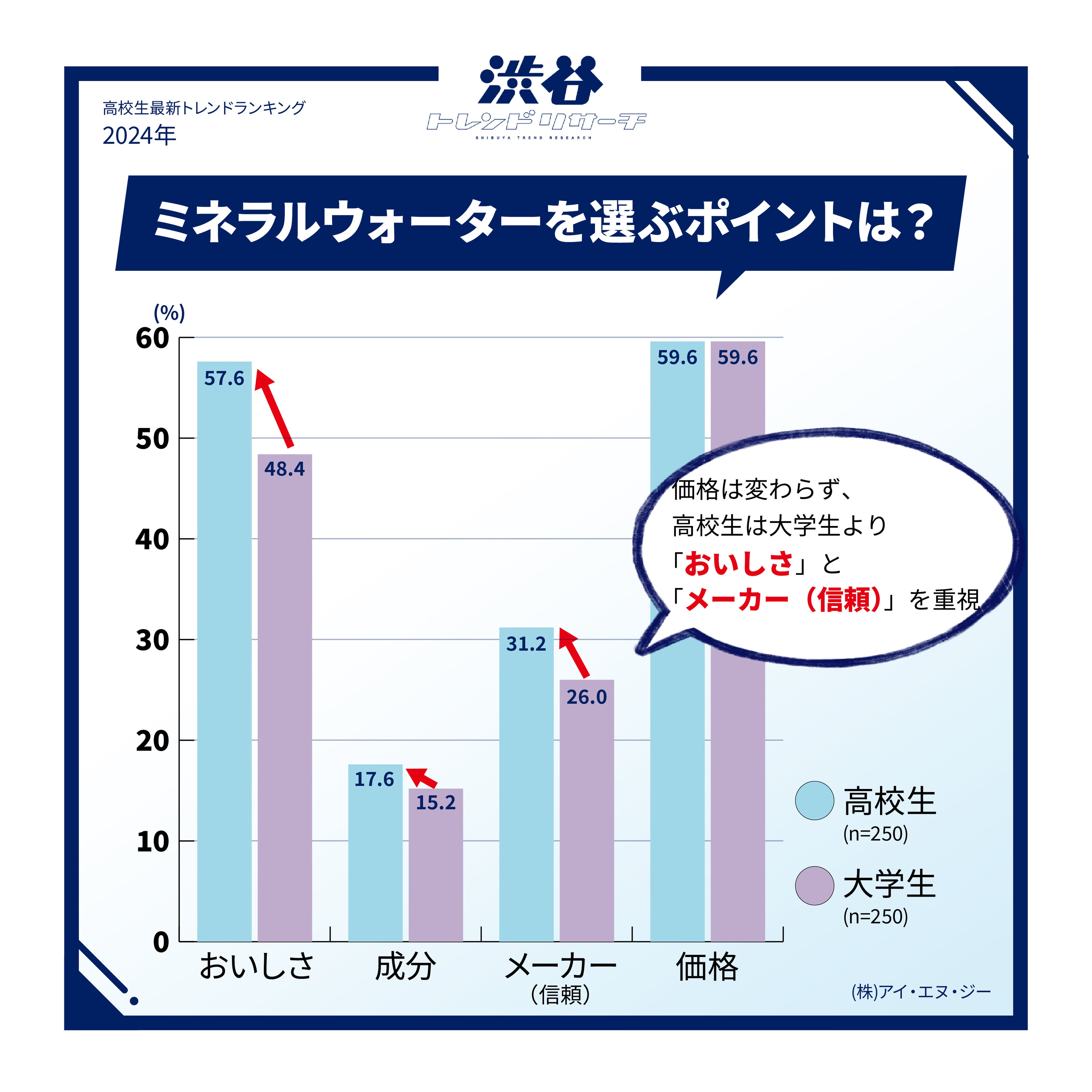 ミネラルウォーターを選ぶポイントは価格だけではなく、味も重要!飲む頻度の高い学生は加えてメーカー(信頼)も選ぶポイントに!